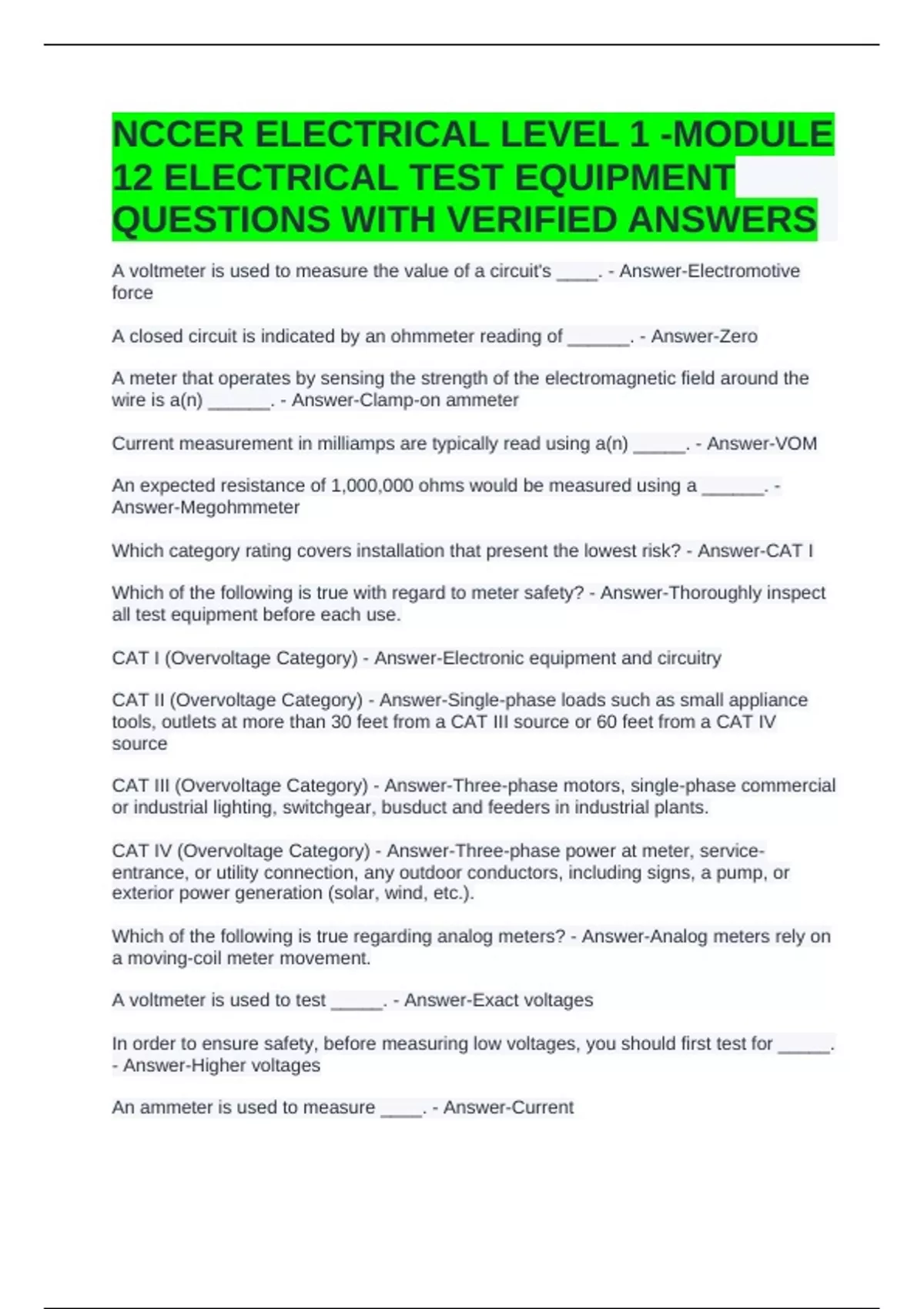 NCCER ELECTRICAL LEVEL 1 -MODULE