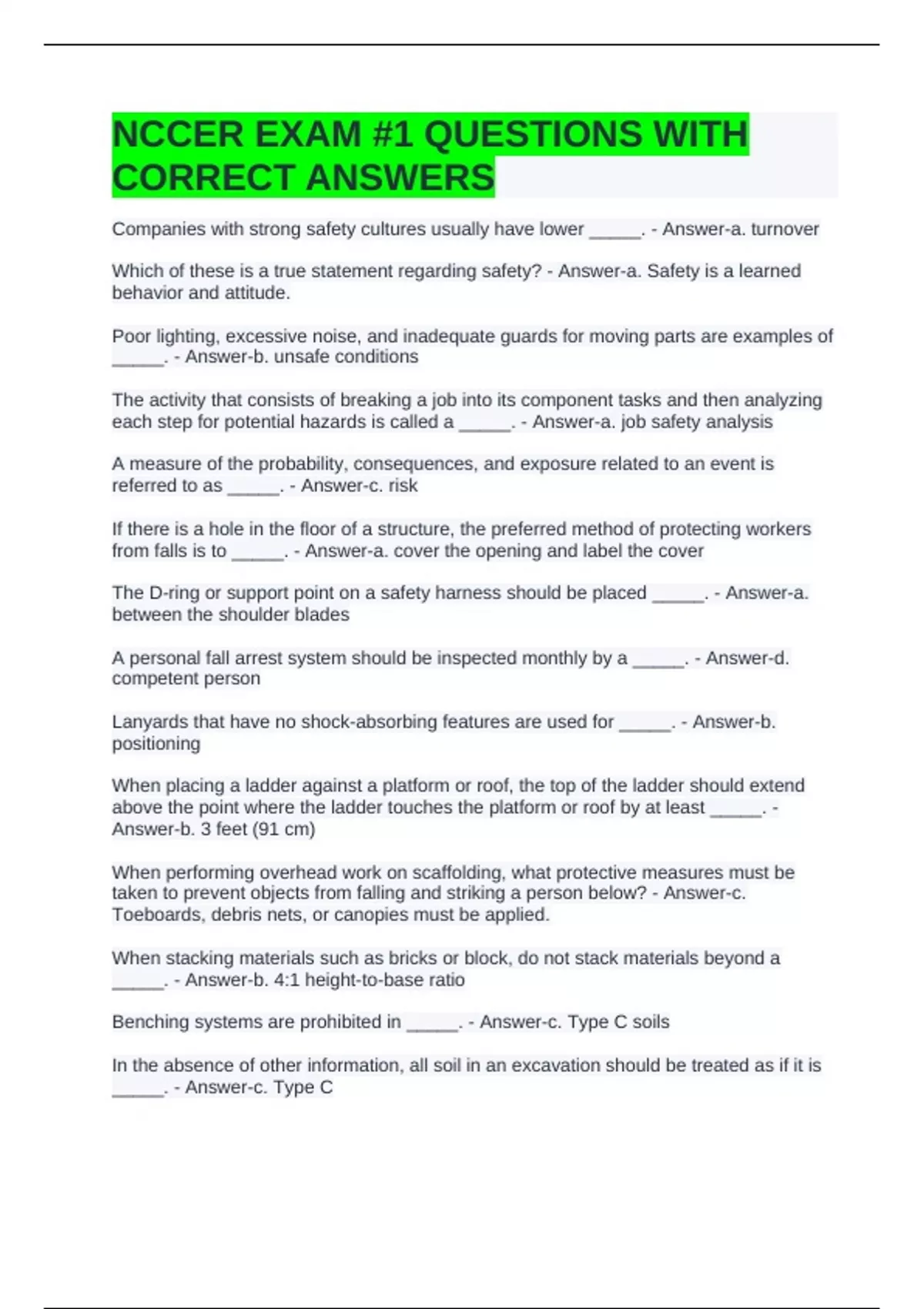 NCCER EXAM #1 QUESTIONS WITH CORRECT ANSWERS