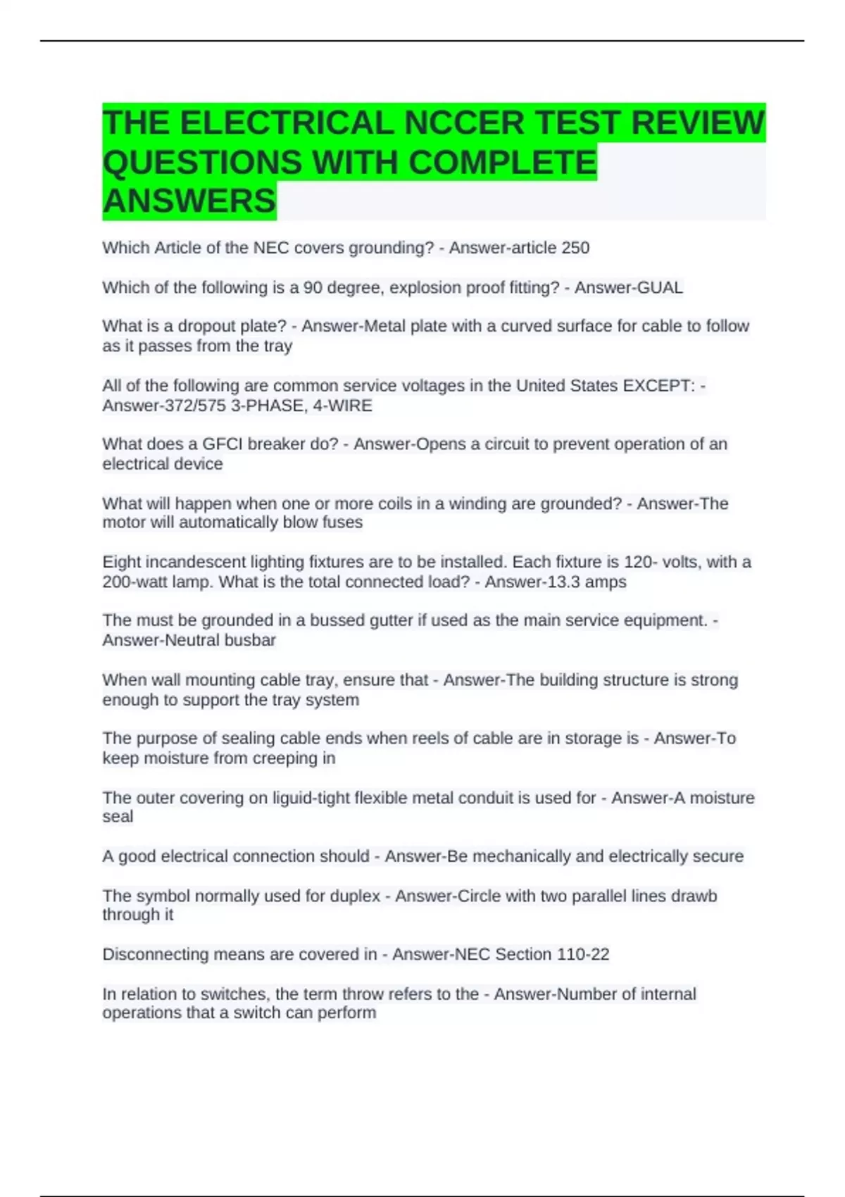 THE ELECTRICAL NCCER TEST REVIEW