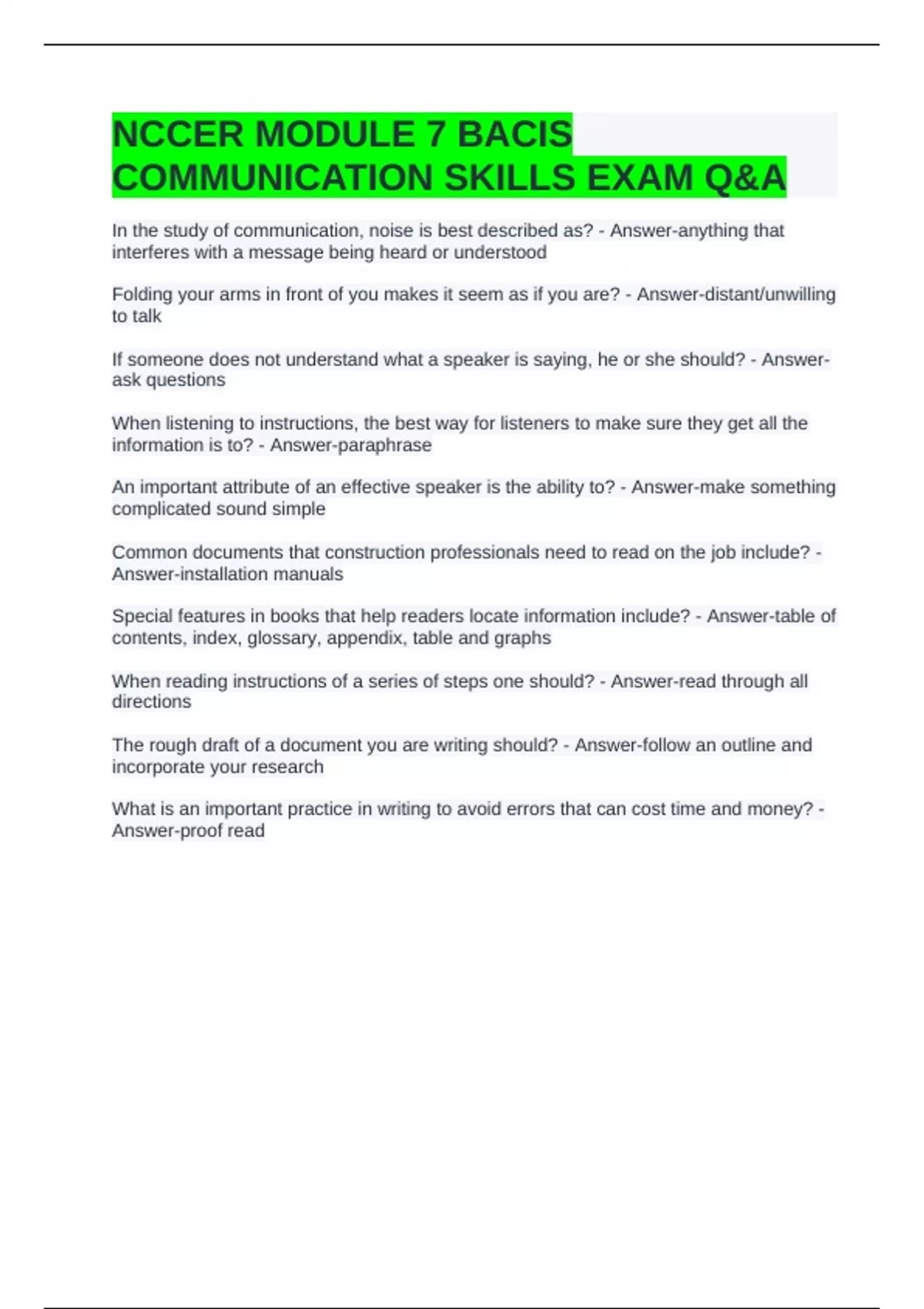 COMMUNICATION SKILLS EXAM Q&A