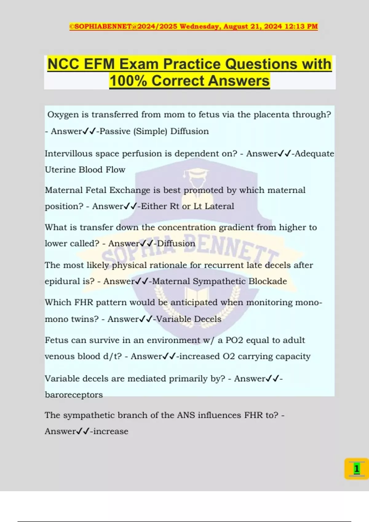 NCC EFM Exam Practice Questions with