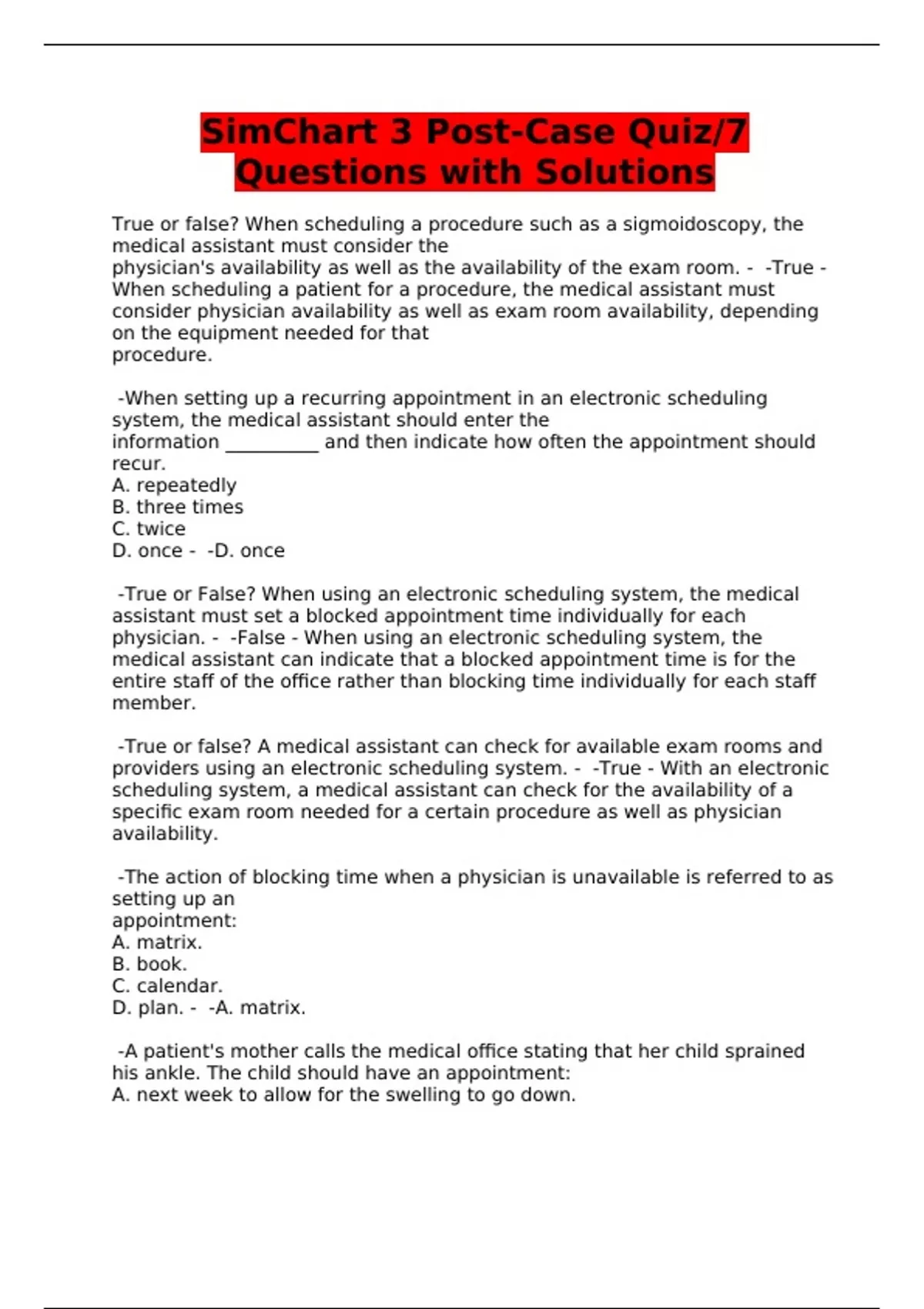 SimChart 3 Post-Case Quiz/7 Questions with Solutions