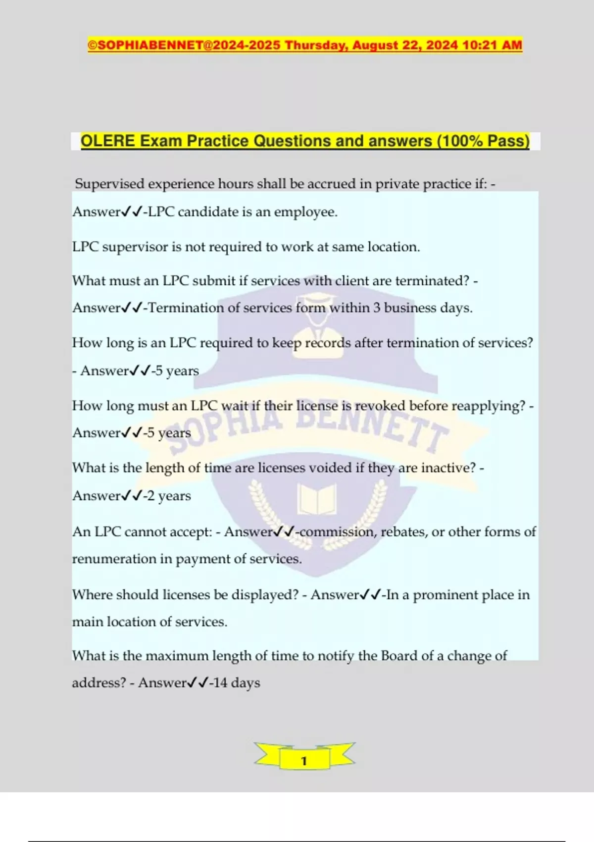 OLERE Exam Practice Questions and answers (100% Pass)