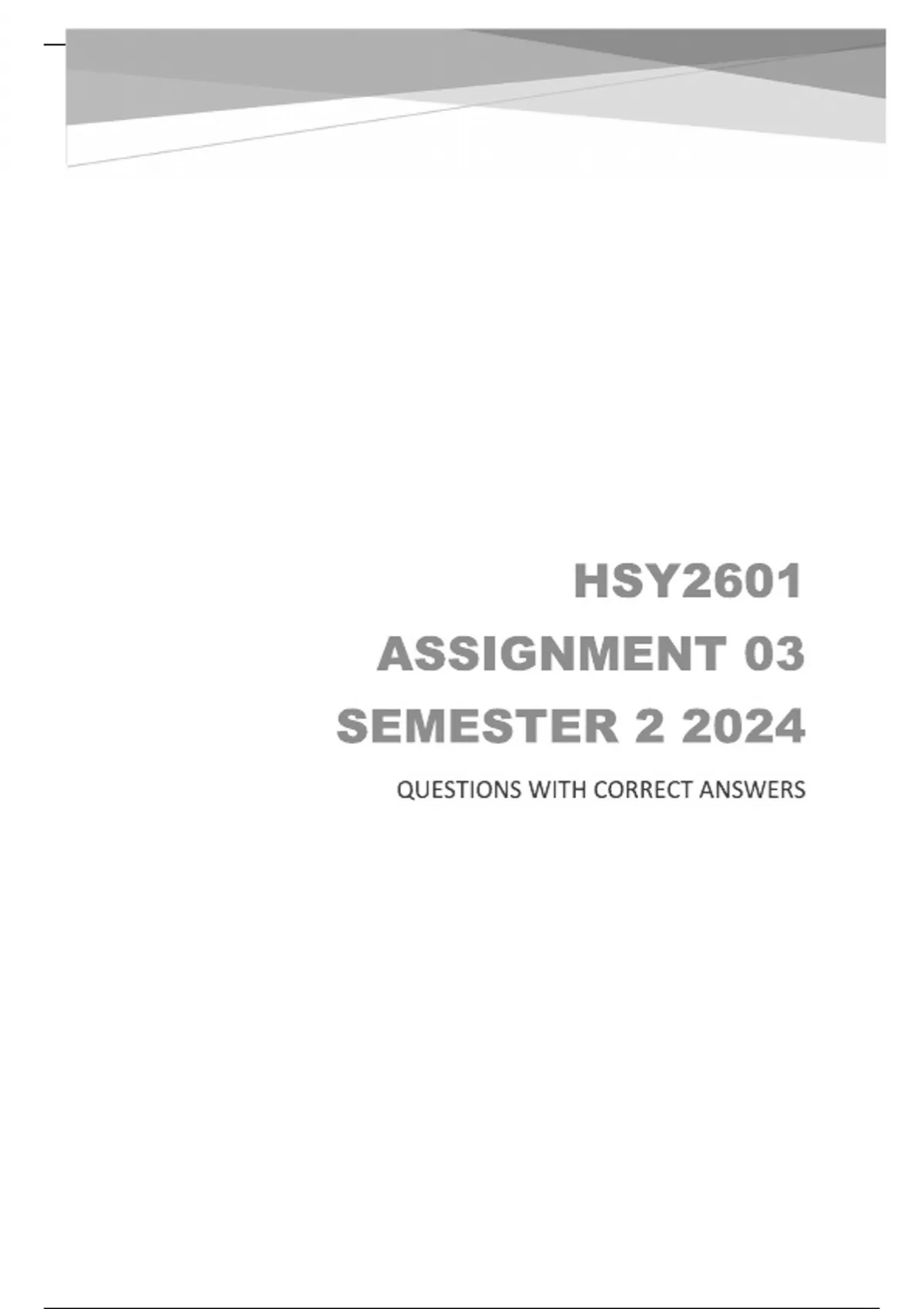hsy2601 assignment 3 quality answers semester 2