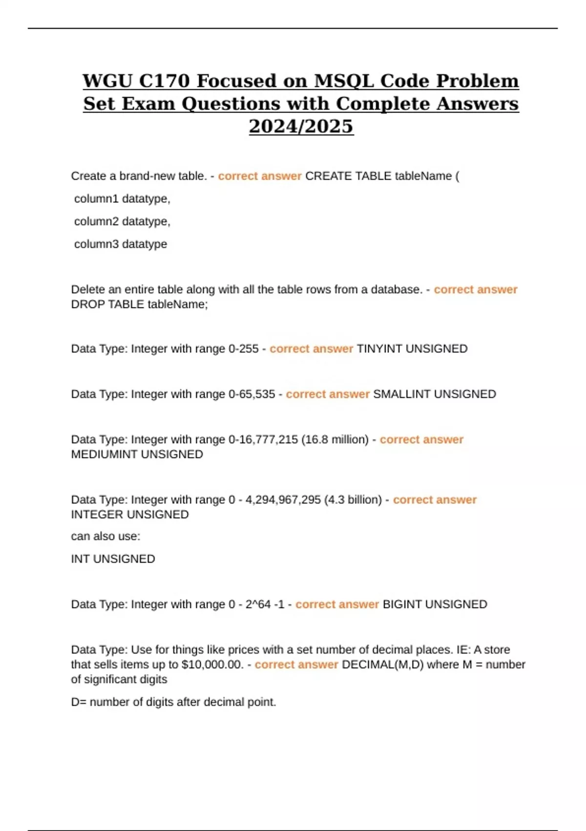 Create a brand-new table. - correct answer CREATE TABLE tableName (