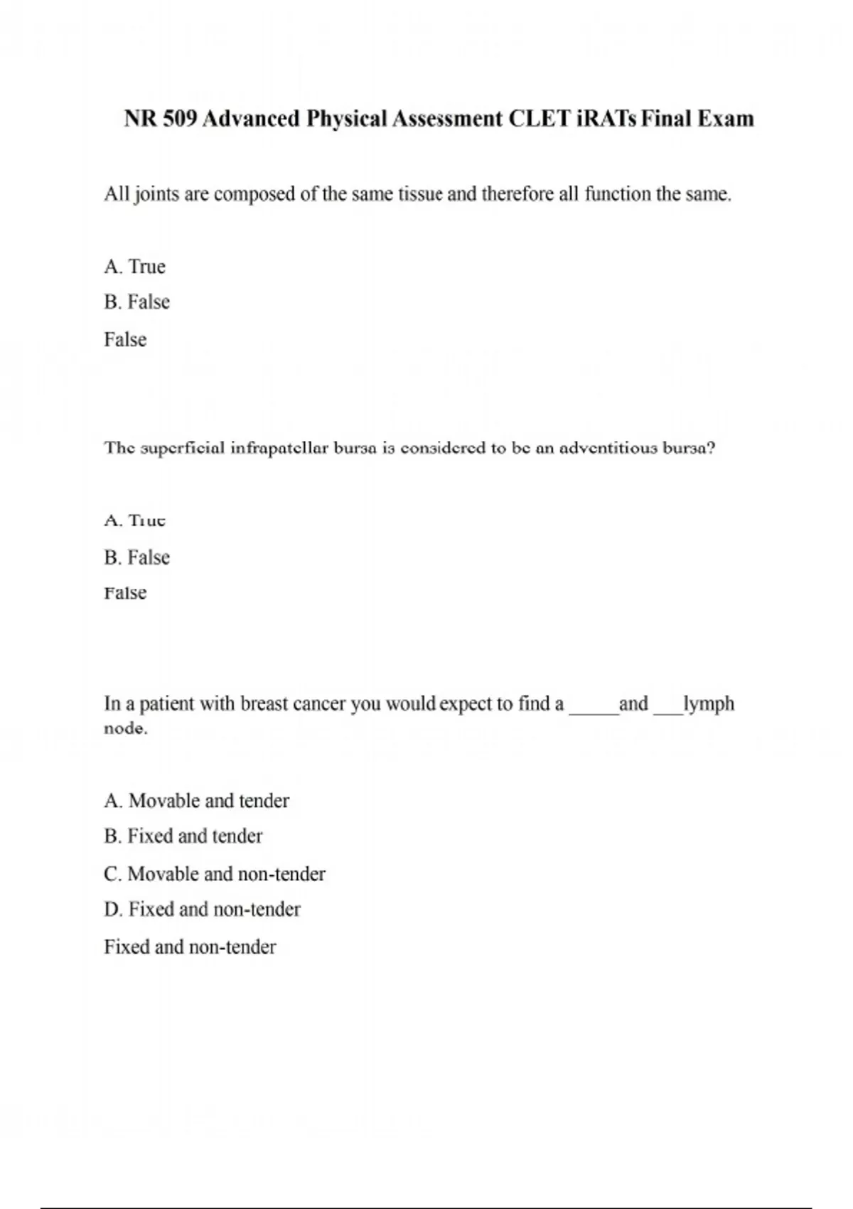 NR 509 Advanced Physical Assessment CLET iRATs Final Exam
