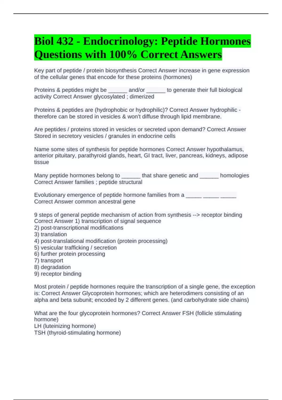 Name some sites of synthesis for peptide hormones Correct Answer hypothalamus,