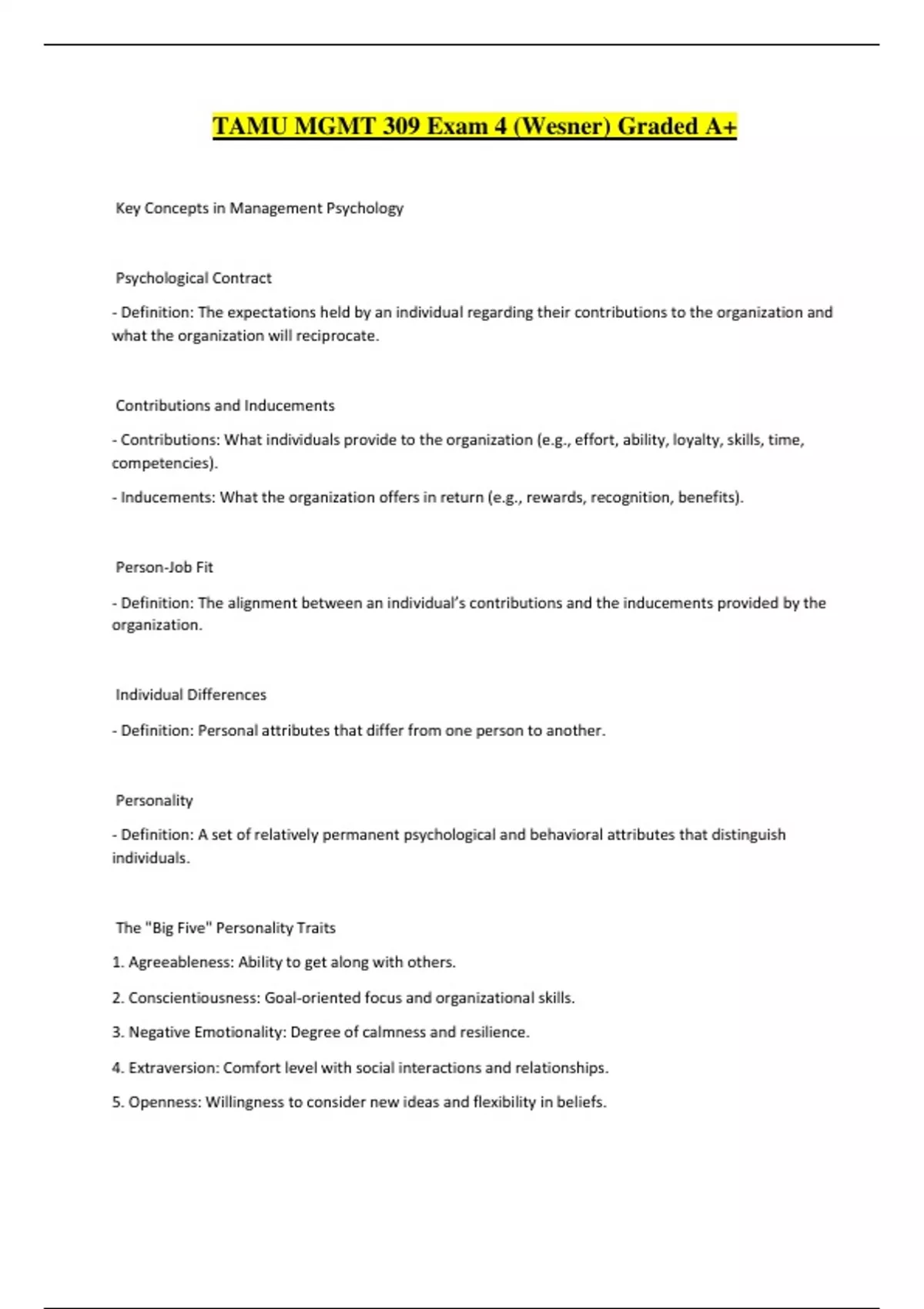 - Definition: A set of relatively permanent psychological and behavioral attributes that distinguish