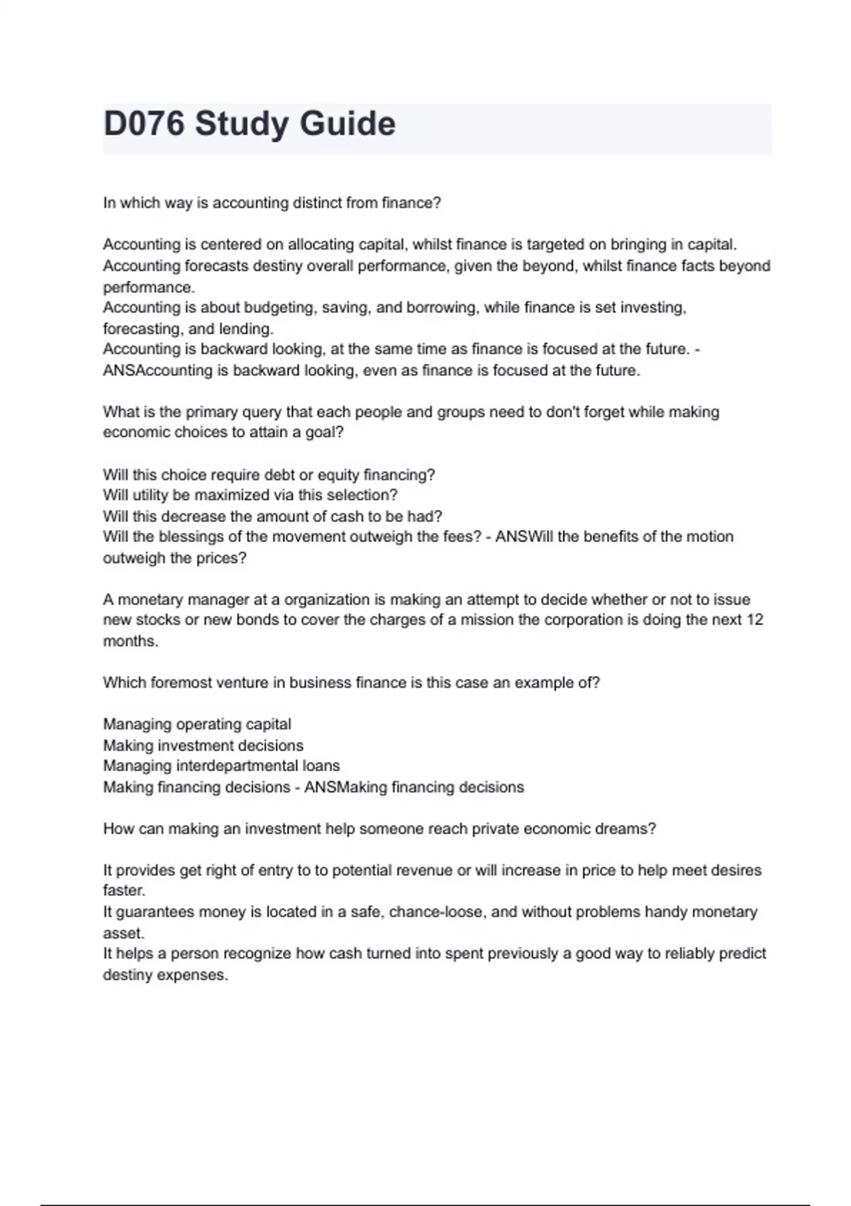 Making financing decisions - ANSMaking financing decisions