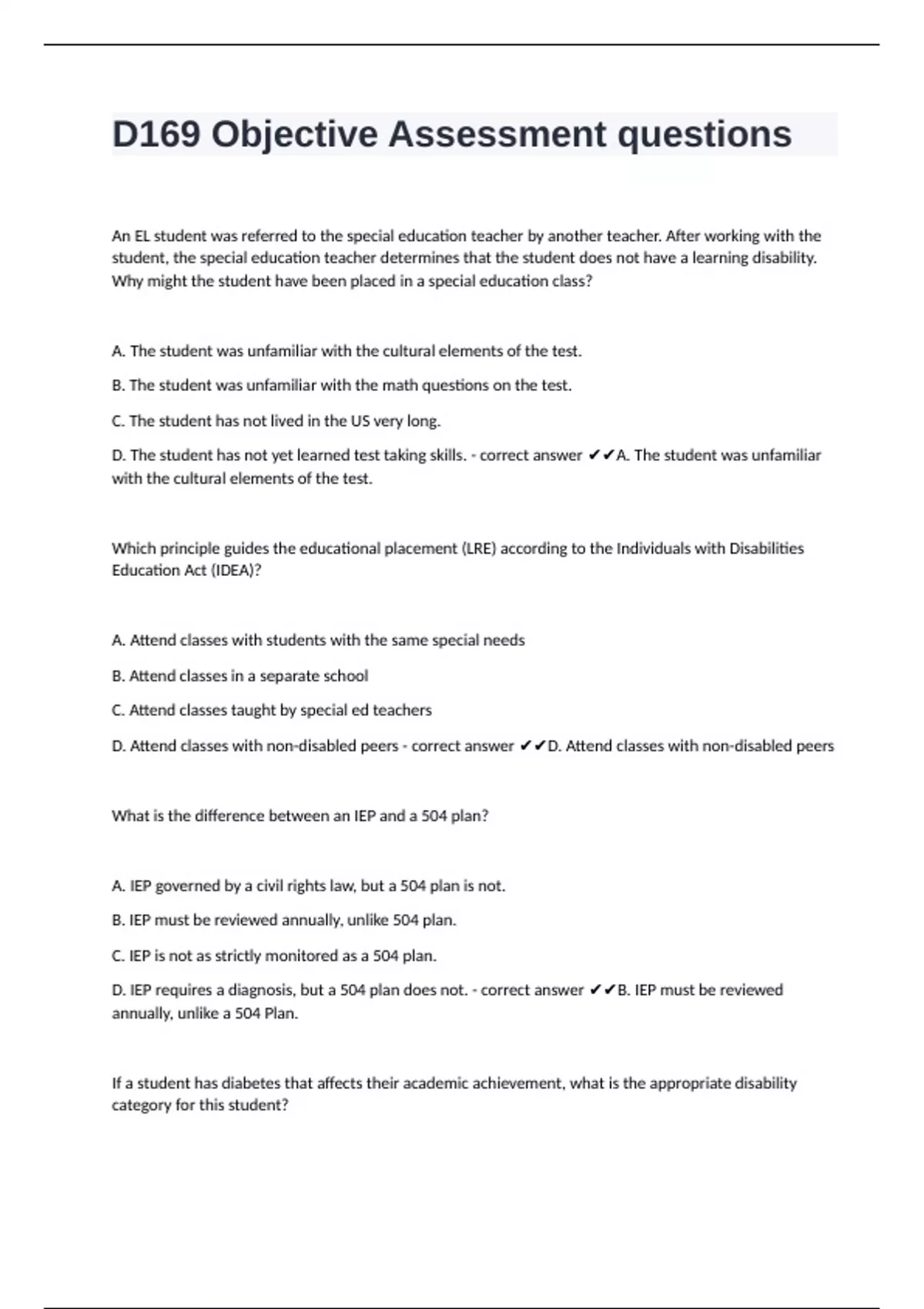 D169 Objective Assessment questions