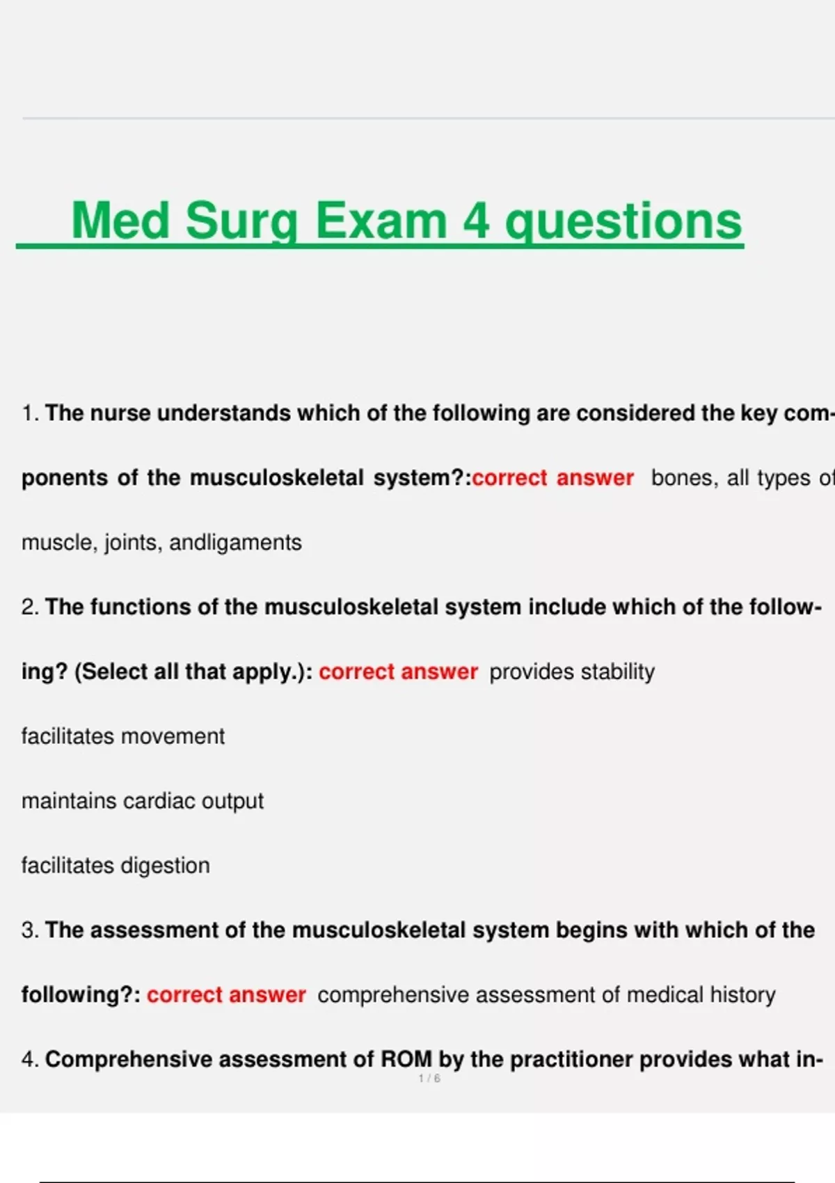 ponents of the musculoskeletal system?:correct answer bones, all types of