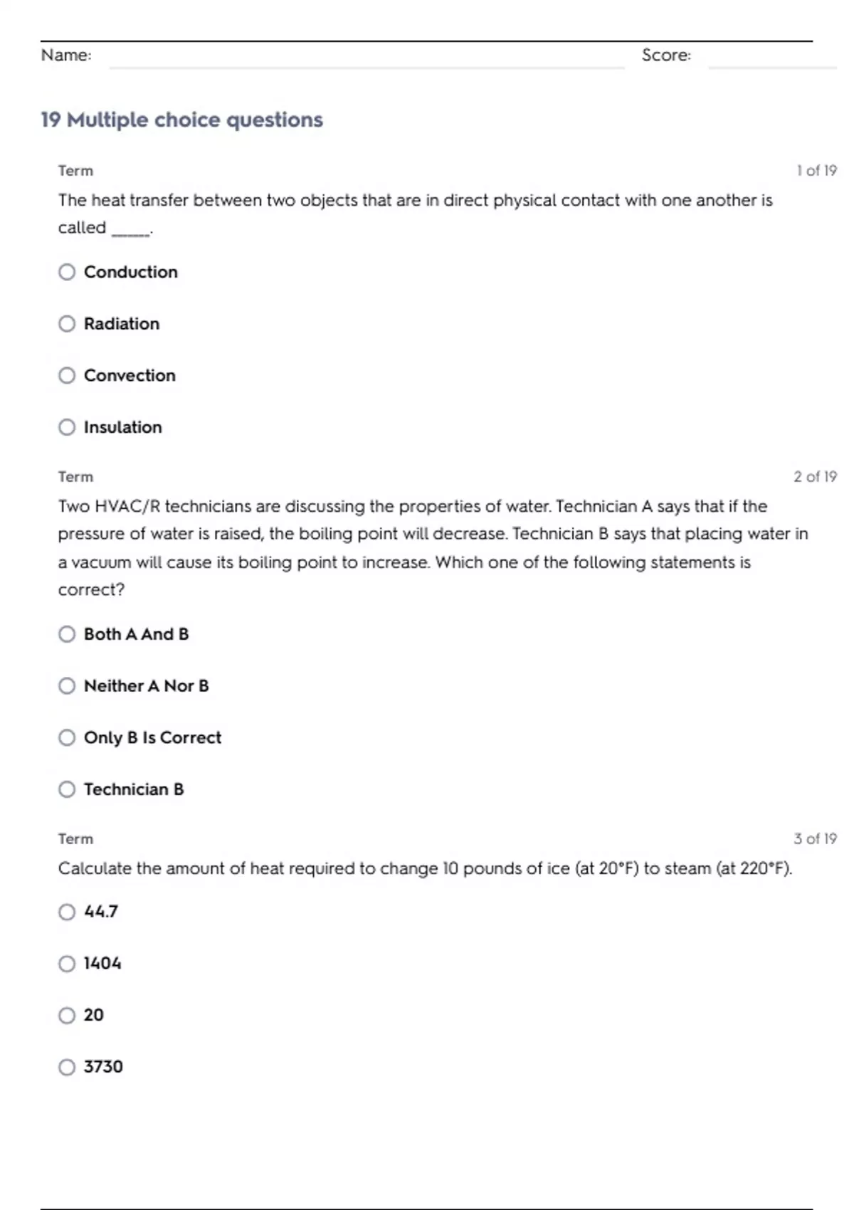 Name: Score: