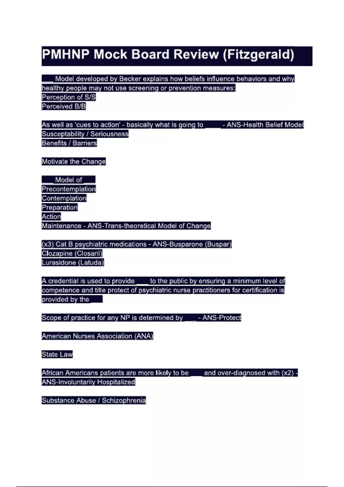 PMHNP Mock Board Review (Fitzgerald).