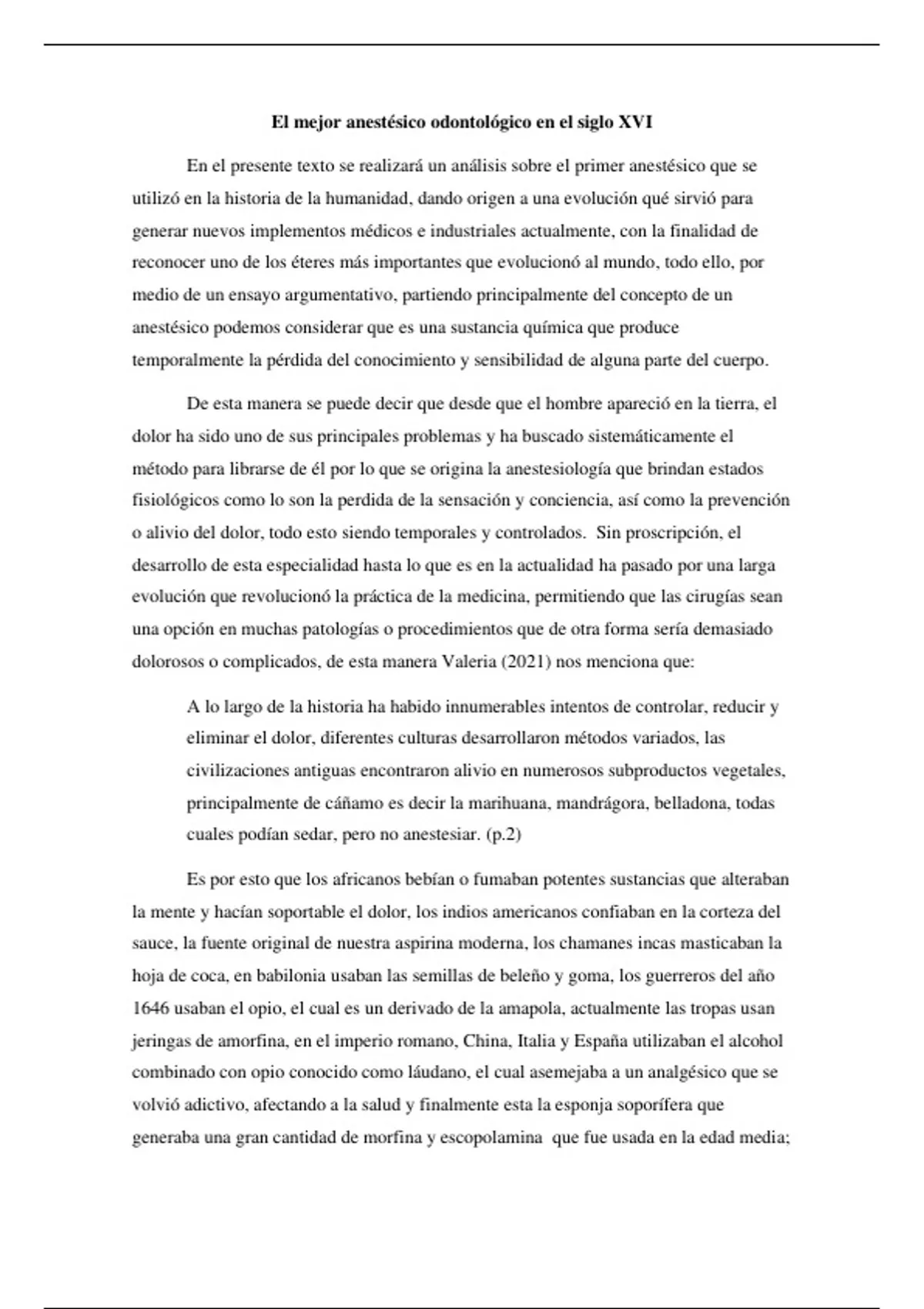 En el presente texto se realizará un análisis sobre el primer anestésico que se
