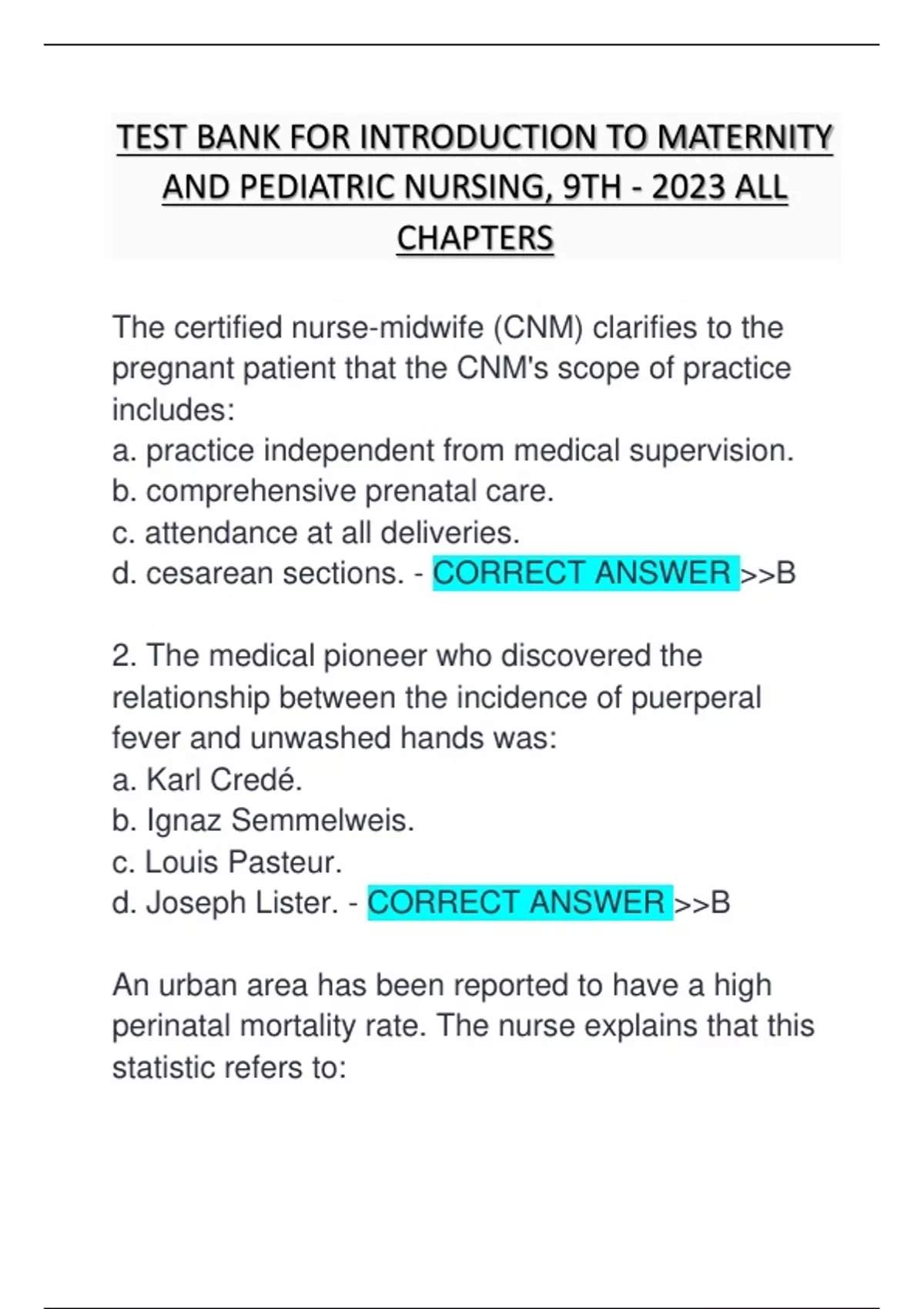 Neonatal Nurses. - CORRECT ANSWER >>B