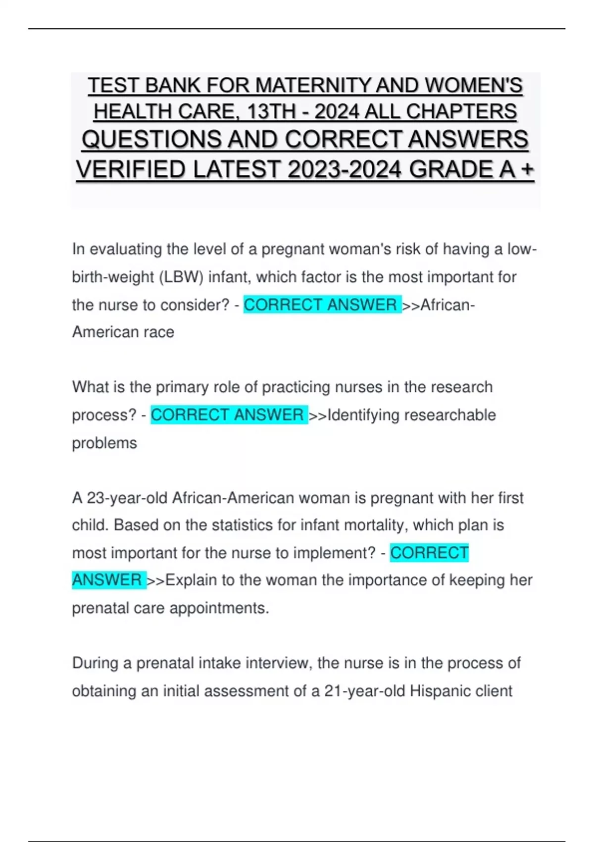 VERIFIED LATEST 2023-2024 GRADE A +