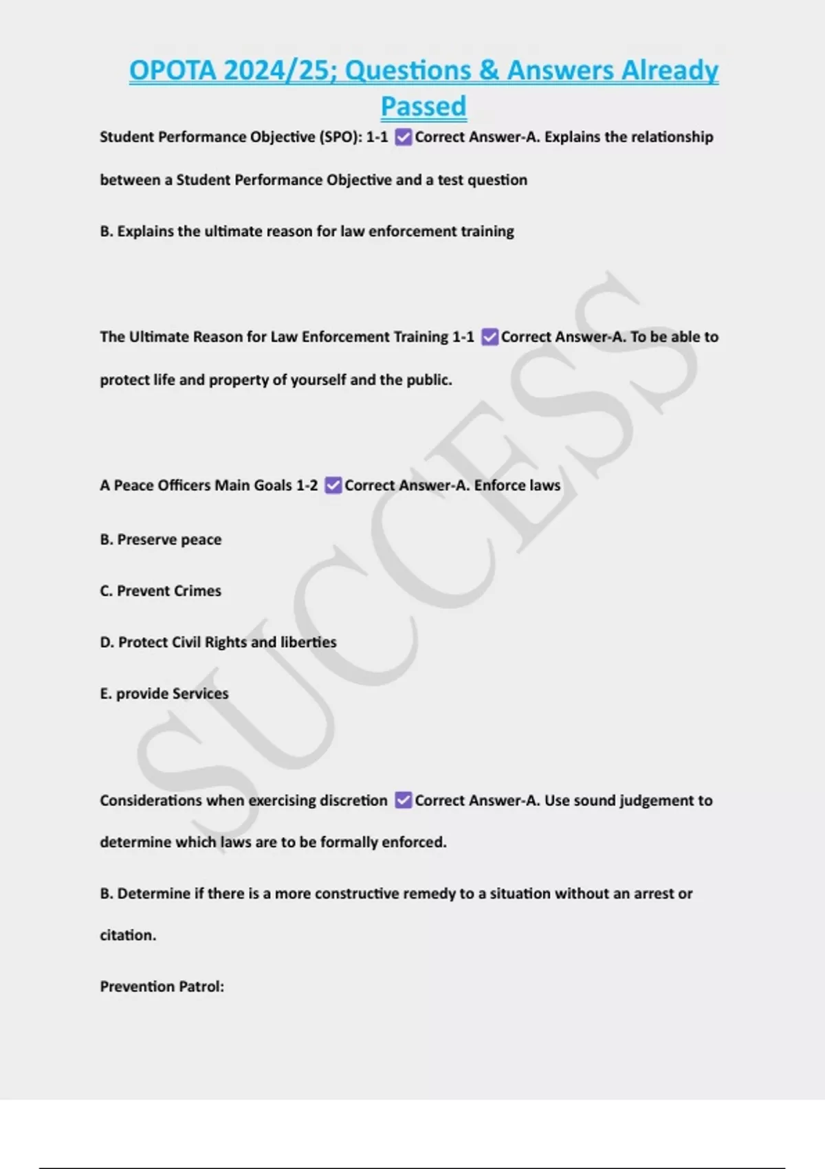 , OPOTA 2024/25; Questions & Answers Already