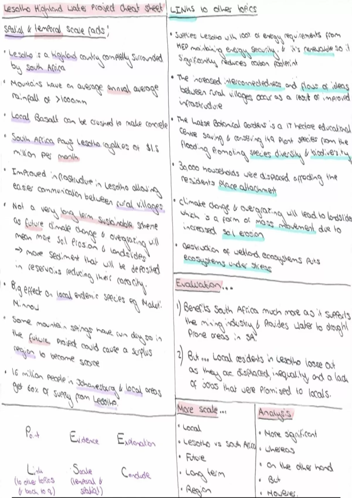 AQA A-Level Lesotho Highland Water Project Cheat Sheet