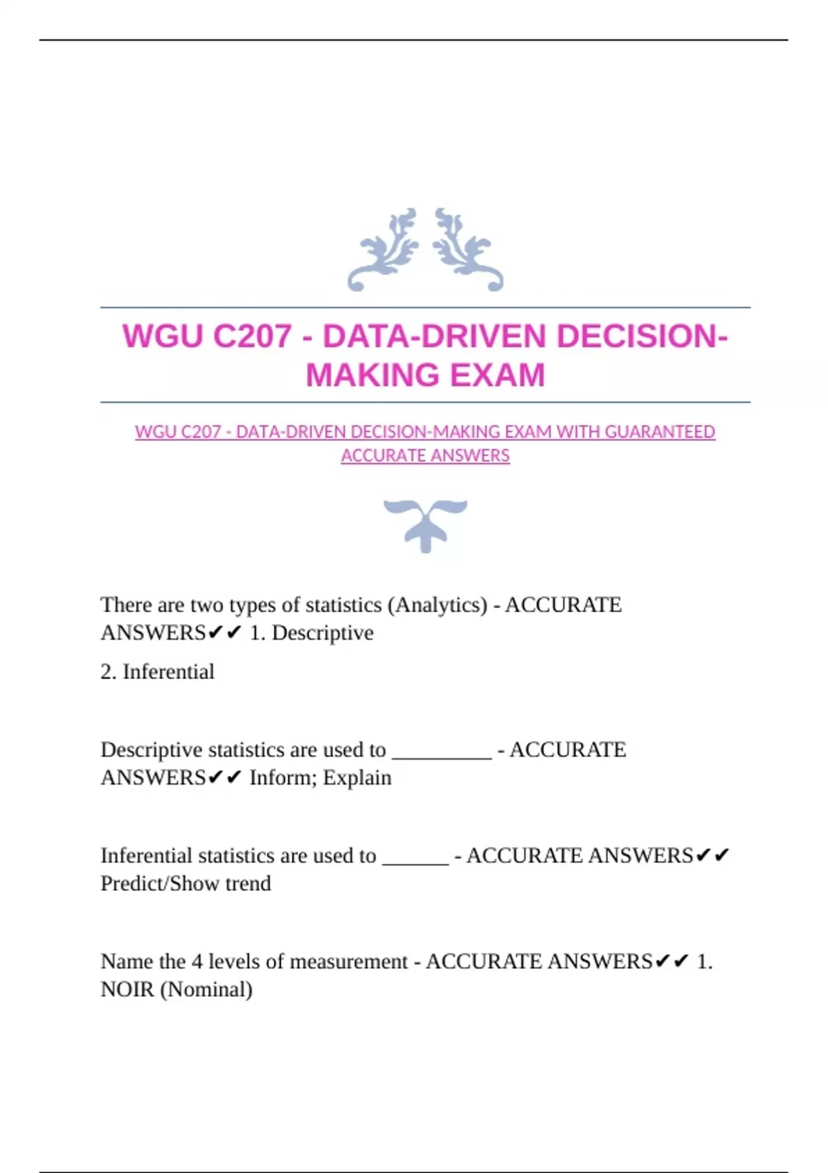 WGU C207 - DATA-DRIVEN DECISION-MAKING EXAM WITH GUARANTEED