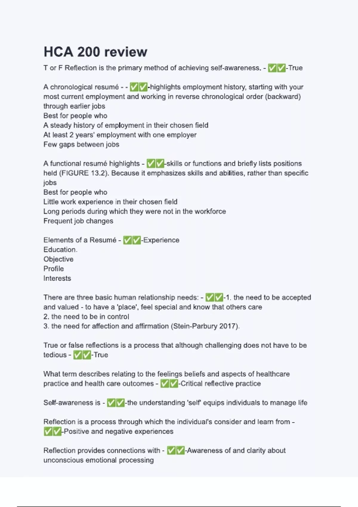 HCA 200 review with verified correct answers - complete solution 2024.