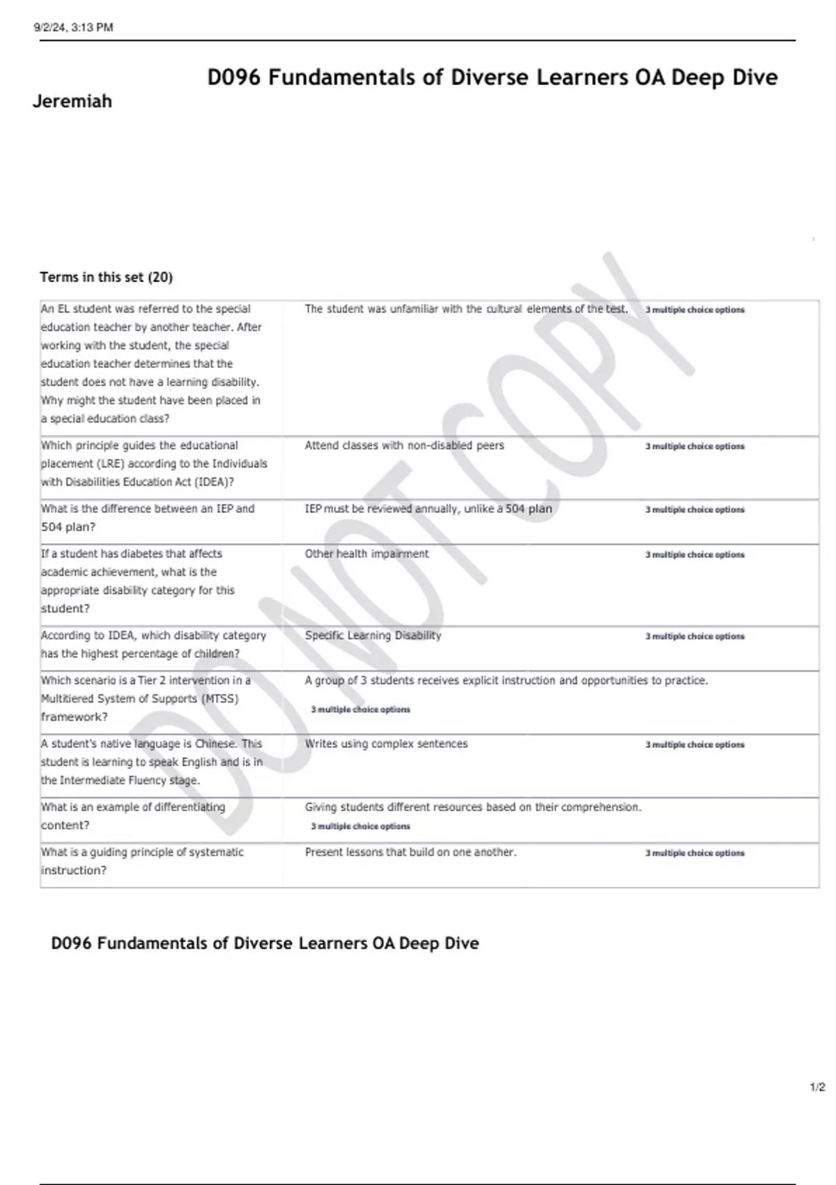 D096 Fundamentals of Diverse Learners OA Deep Dive