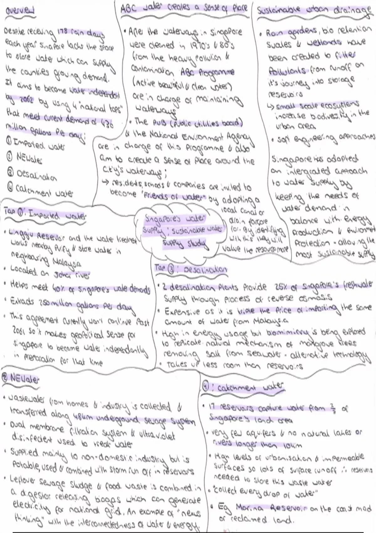 AQA A-Level Sustainable water supply in Singapore Summary