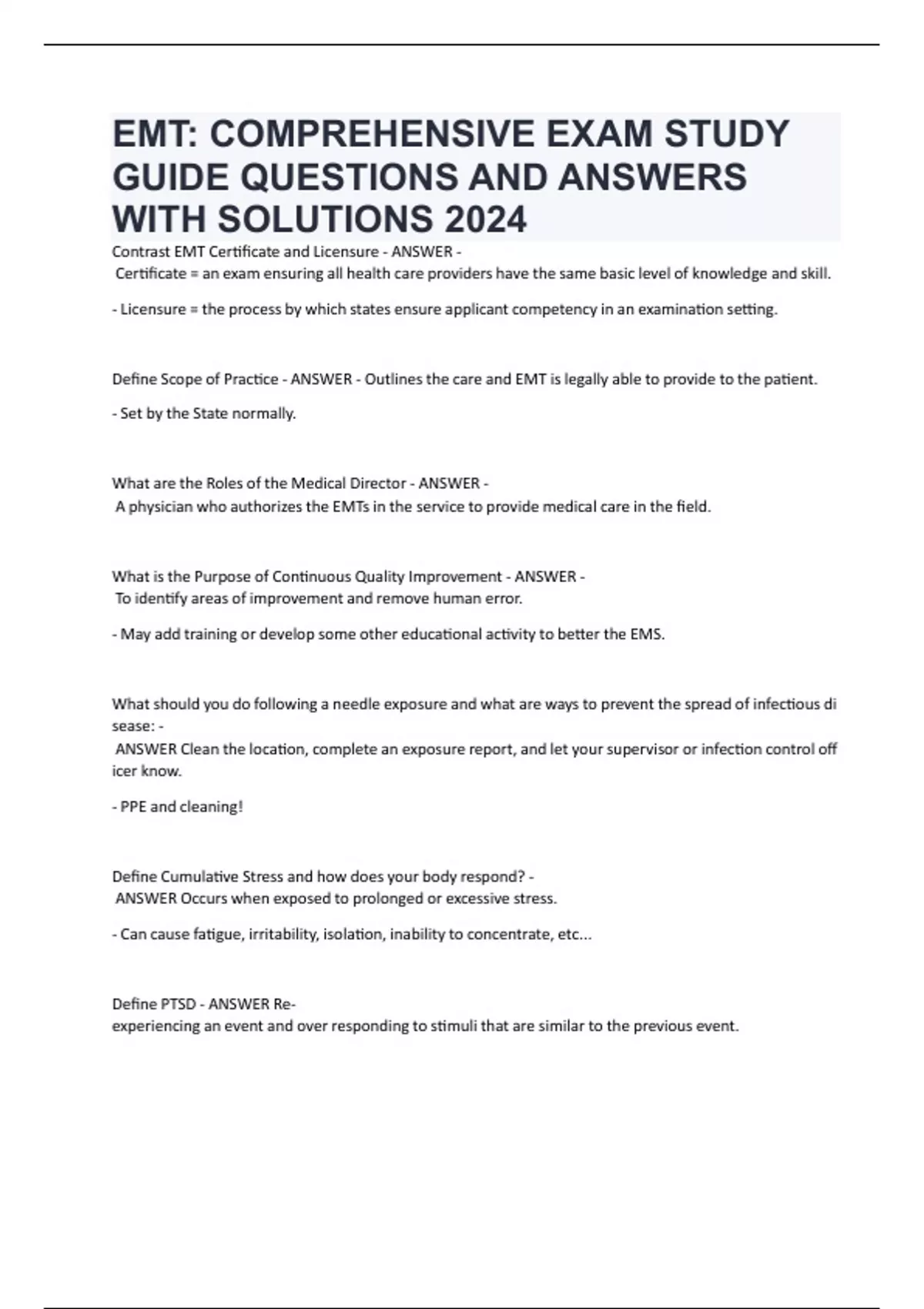 EMT: COMPREHENSIVE EXAM STUDY GUIDE QUESTIONS AND ANSWERS WITH SOLUTIONS 2024