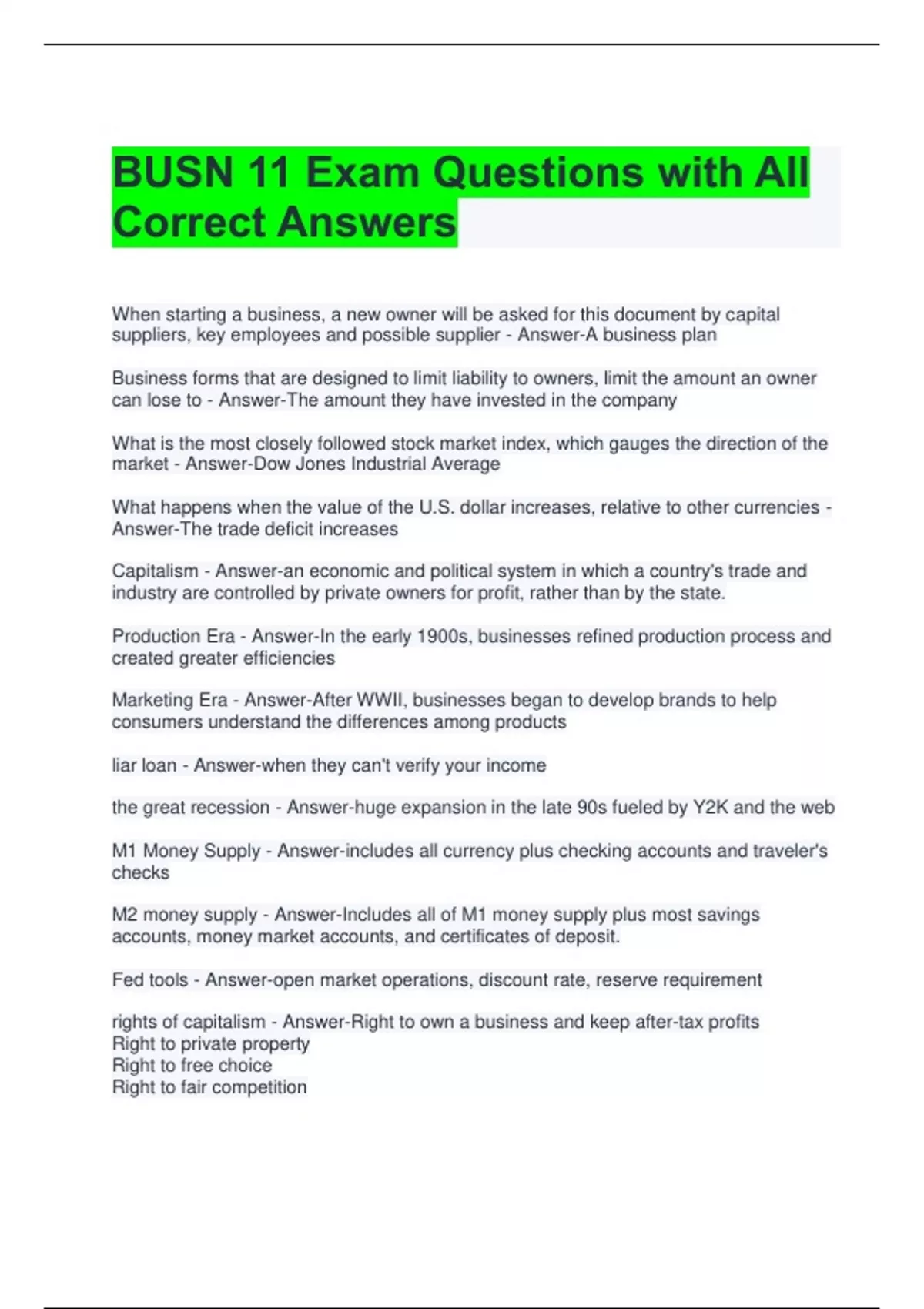 rights of capitalism - Answer-Right to own a business and keep after-tax profits