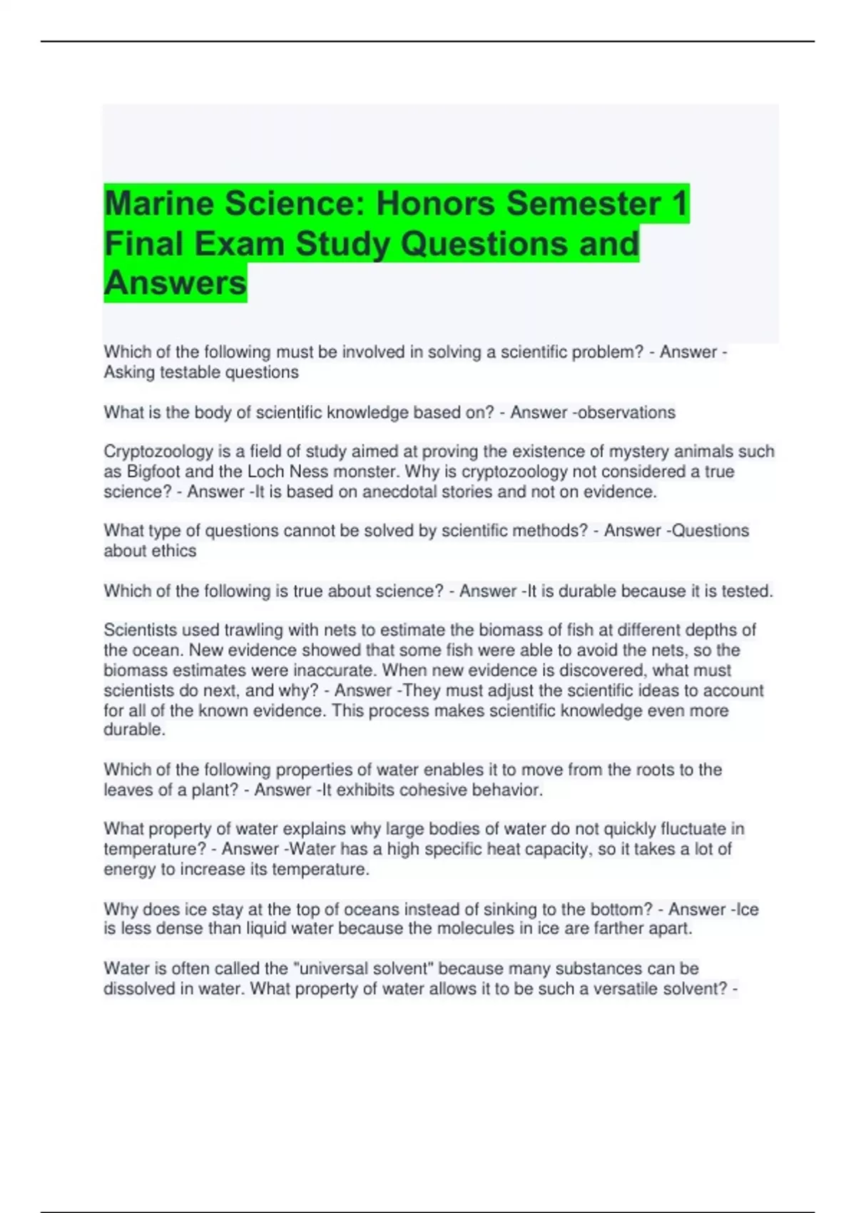 Marine Science: Honors Semester 1