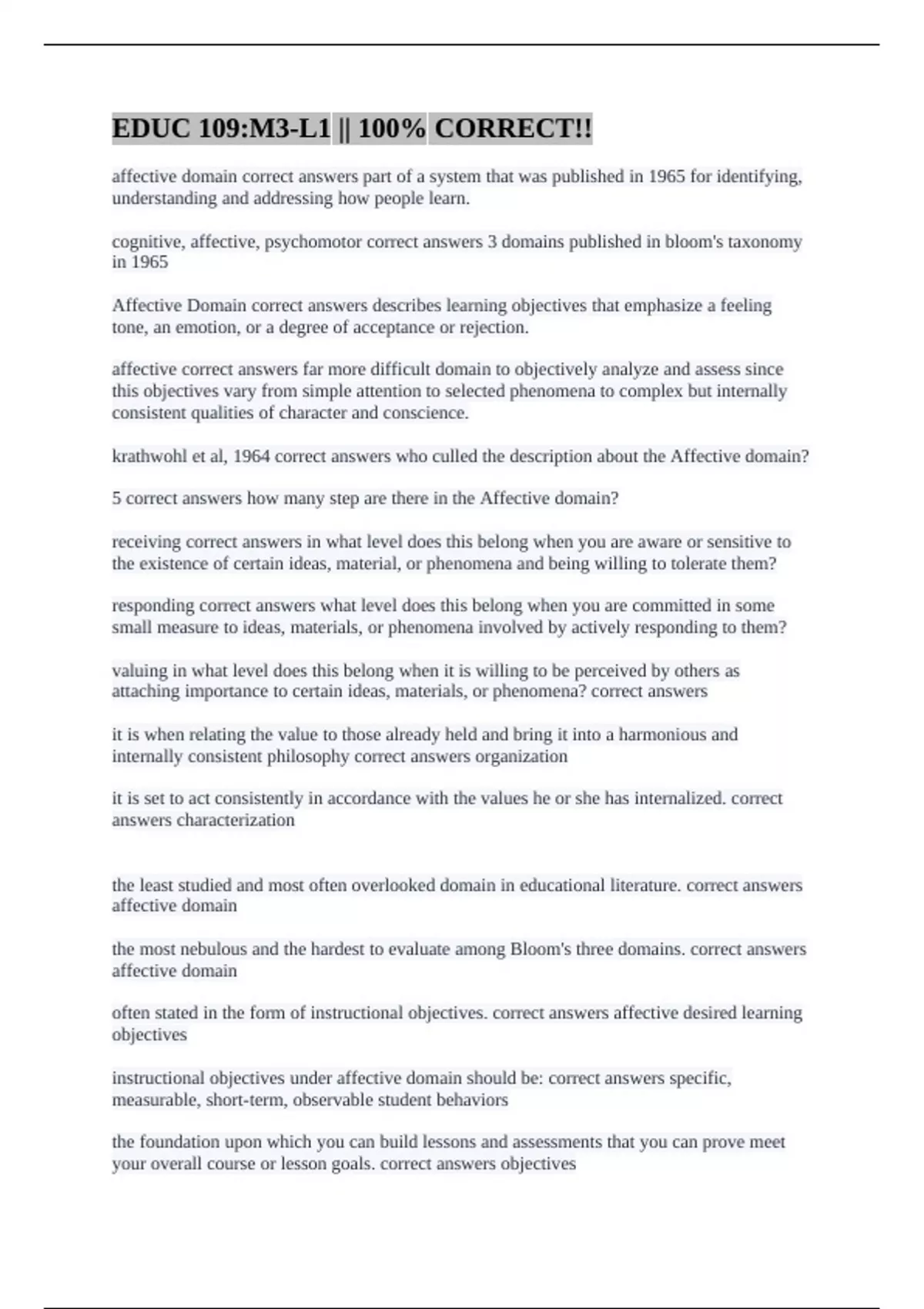 affective domain correct answers part of a system that was published in 1965 for identifying,