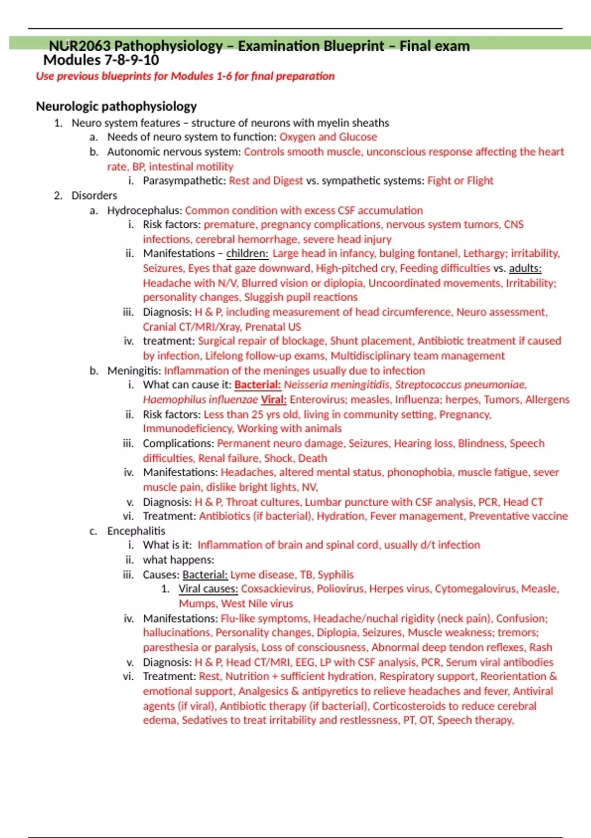 NUR2063 Pathophysiology – Examination Blueprint – Final exam