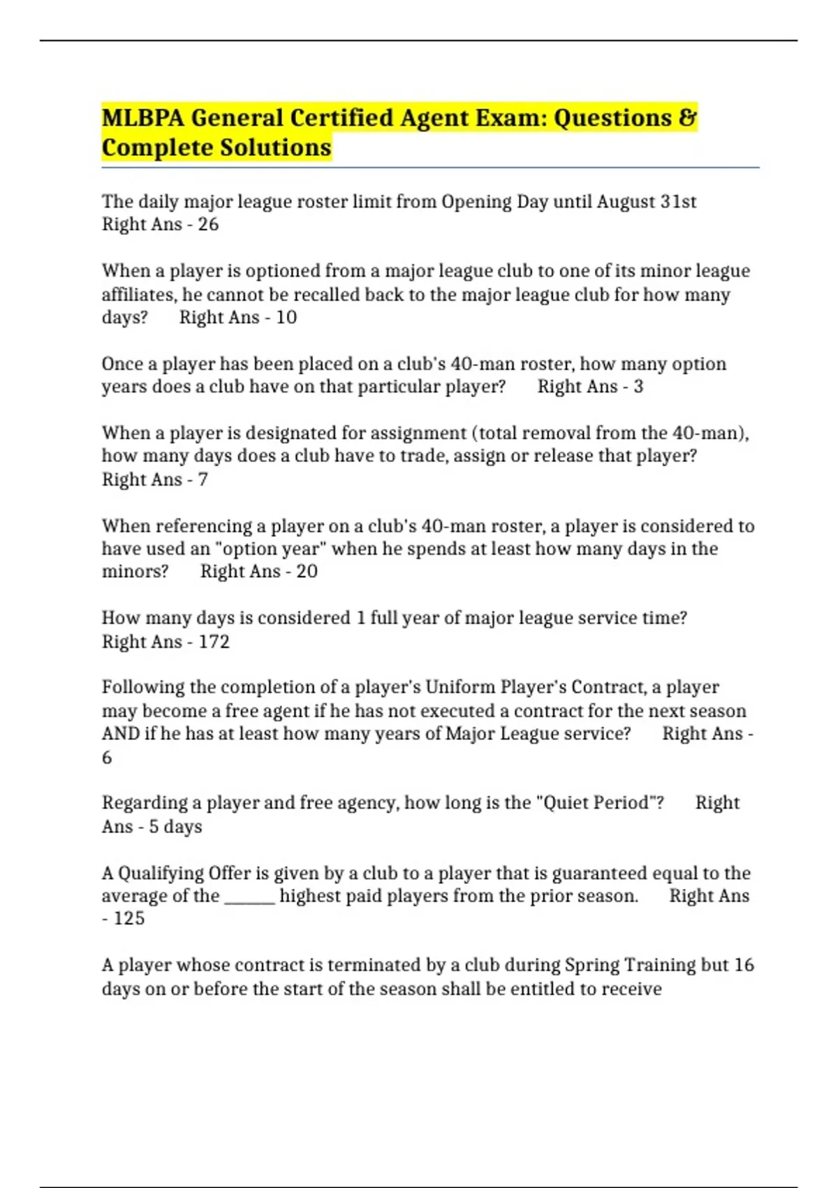AND if he has at least how many years of Major League service? Right Ans -