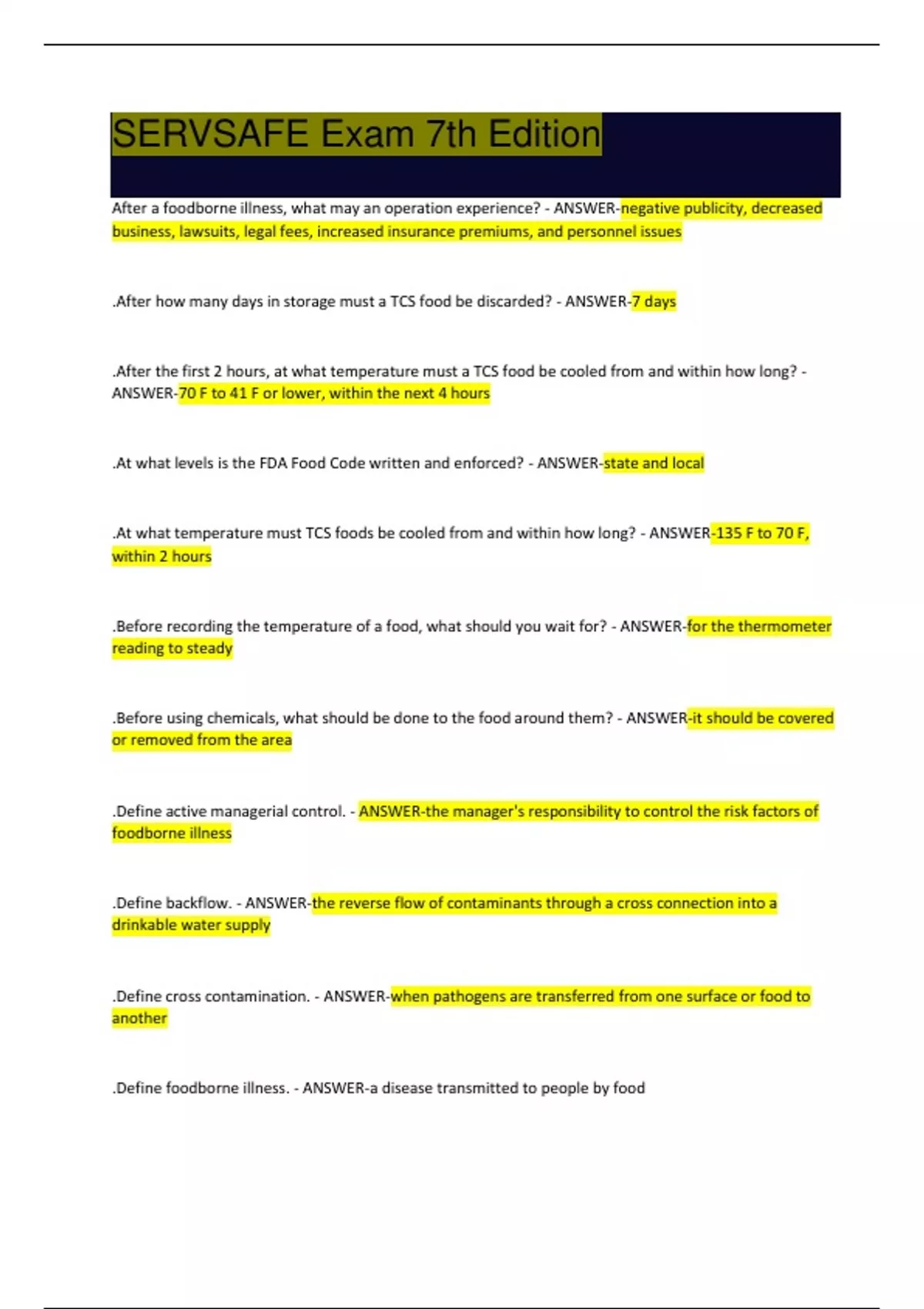 .How often should the internal temperature of TCS foods be checked? - ANSWER-every 4 hours