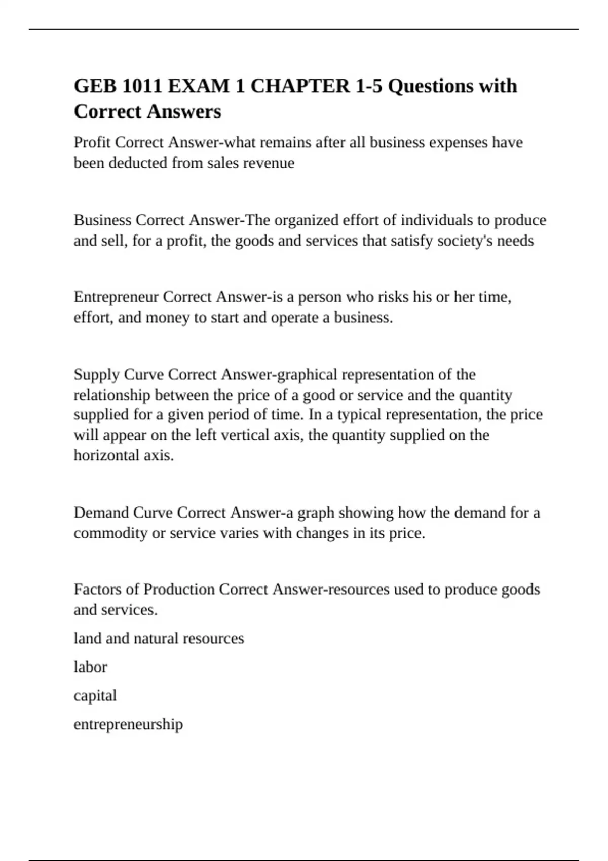 Factors of Production Correct Answer-resources used to produce goods