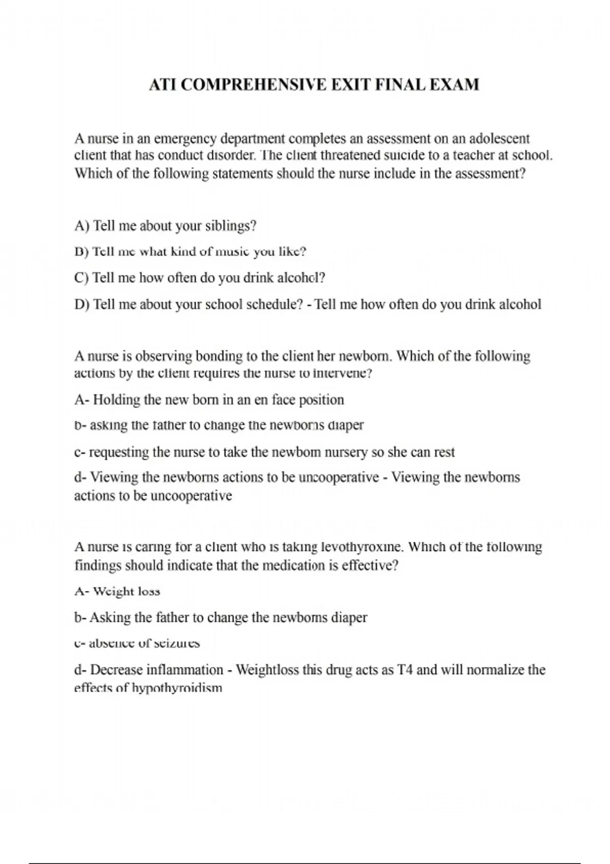 ATI COMPREHENSIVE EXIT FINAL EXAM 2