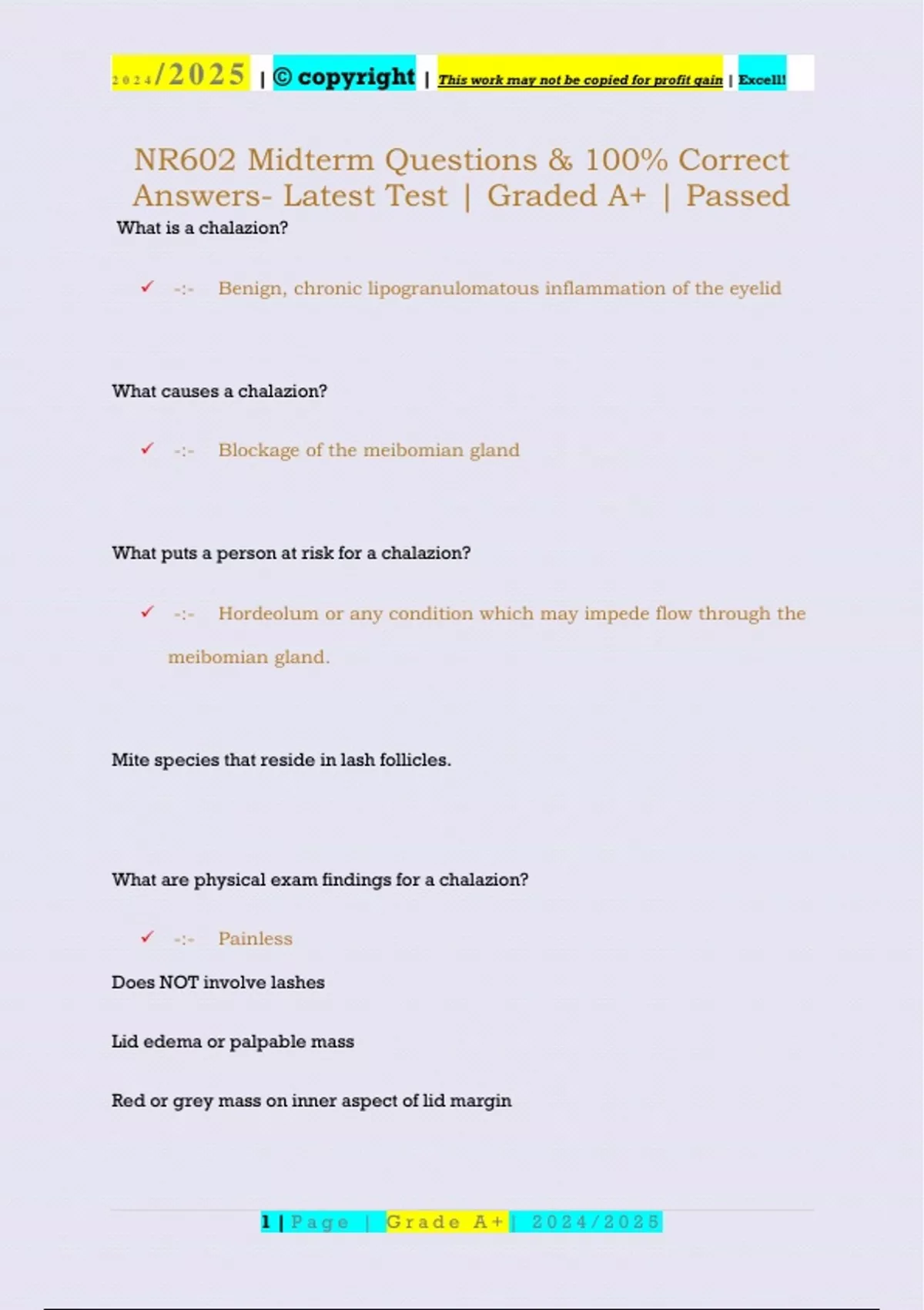 , 2024 /2025 |© copyright | This work may not be copied for profit gain | Excell!