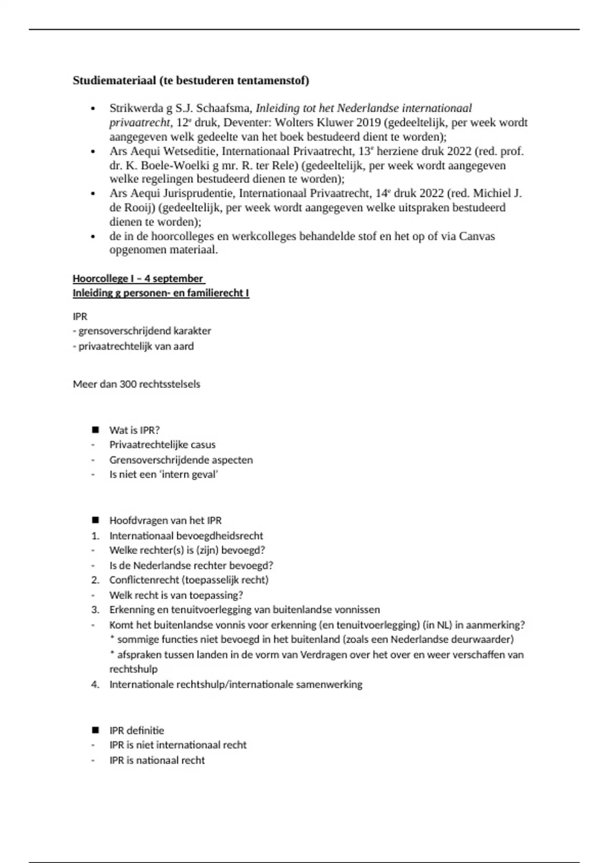 Samenvatting van de hoofdzaken van de hoorcolleges van internationaal privaatrecht. Ideaal om te gebruiken voor de tentamenvoorbereiding.
