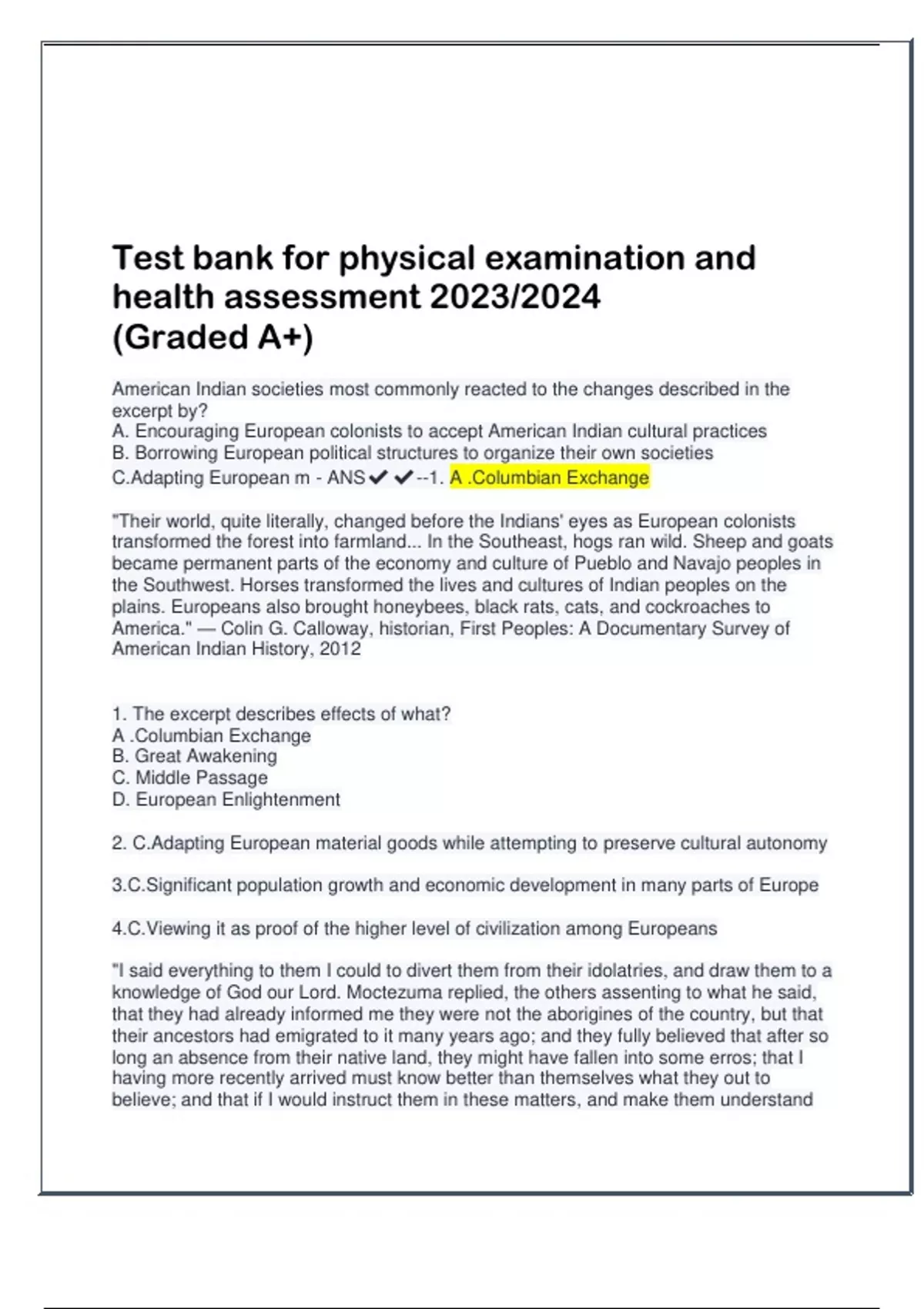 C.Adapting European m - ANS✔✔--1. A .Columbian Exchange