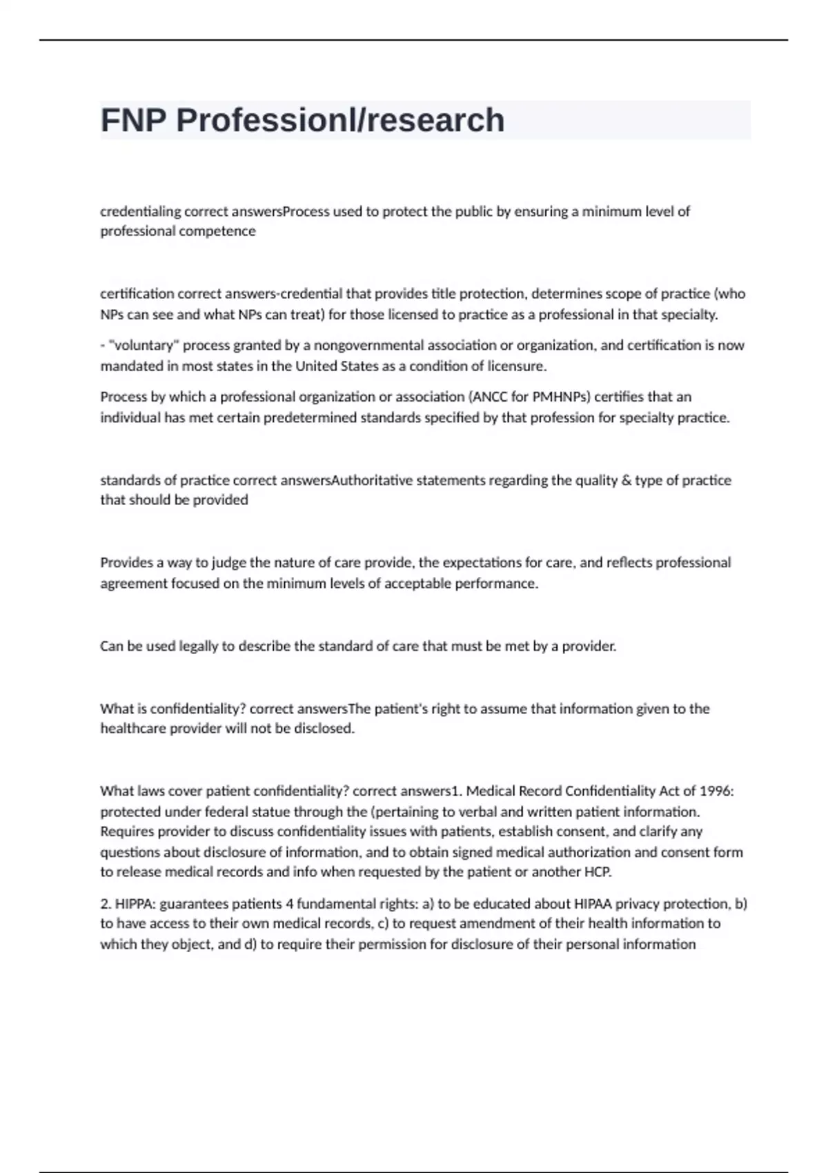 standards of practice correct answersAuthoritative statements regarding the quality & type of practice