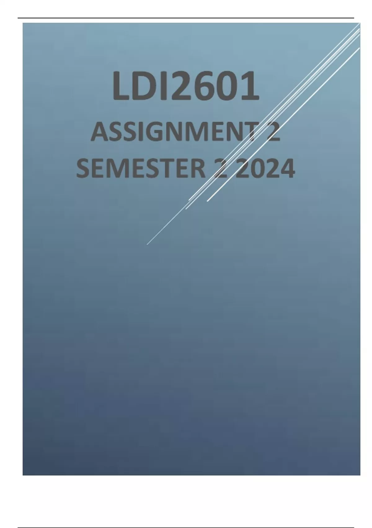 LDI2601 ASSIGNMENT 2 SEMESTER 2 2024 SEMESTER % TRUSTED Complete, trusted solutions and explanations - DISTICTION GARANTEED