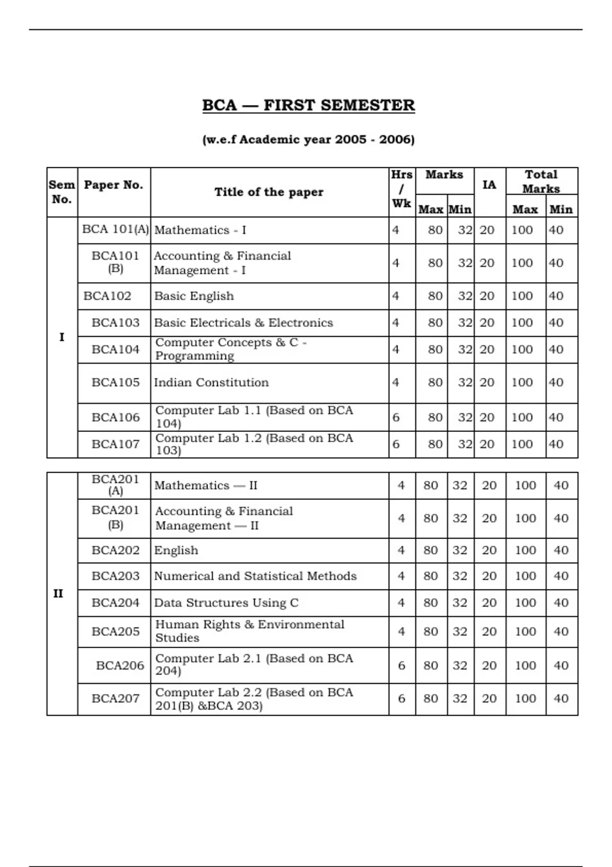 BCA 101(A) Mathematics - I 4 80 32 20 100 40