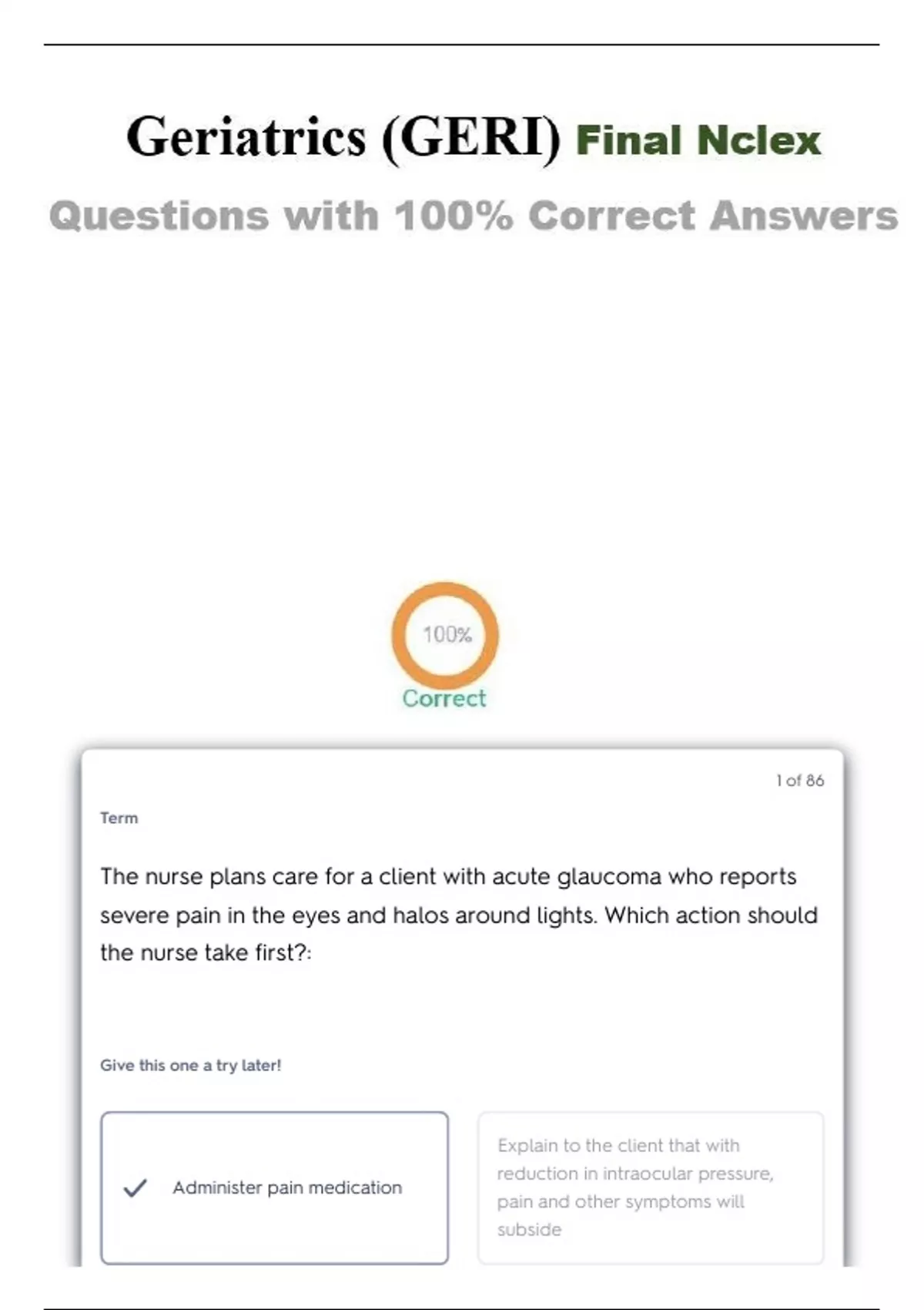 The nurse plans care for a client with acute glaucoma who reports