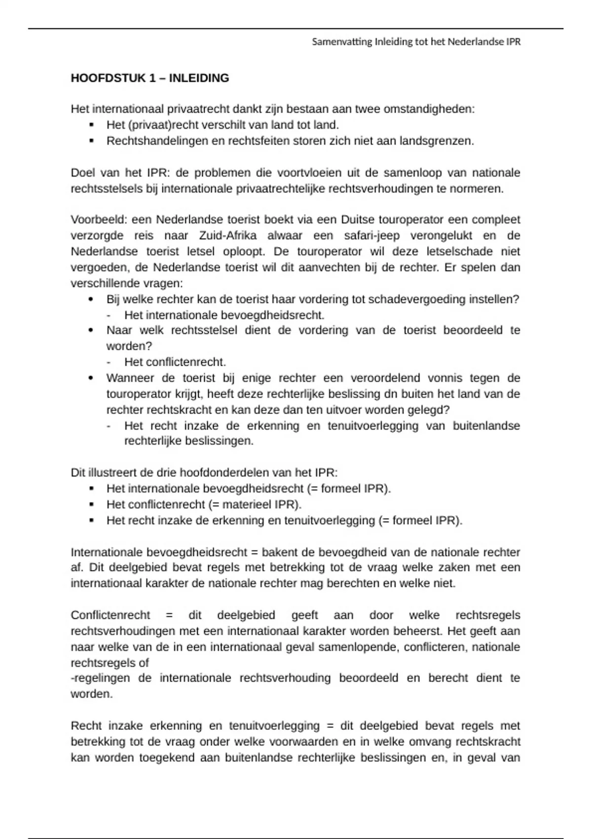 , Samenvatting Inleiding tot het Nederlandse IPR