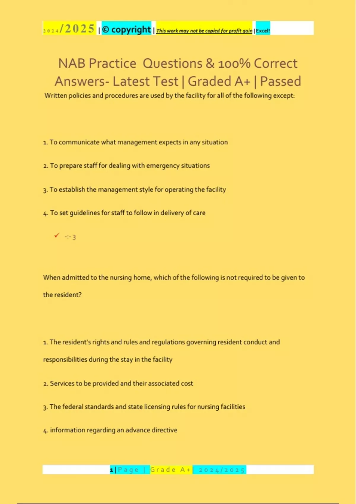 , 2024 /2025 | © copyright | This work may not be copied for profit gain | Excel!