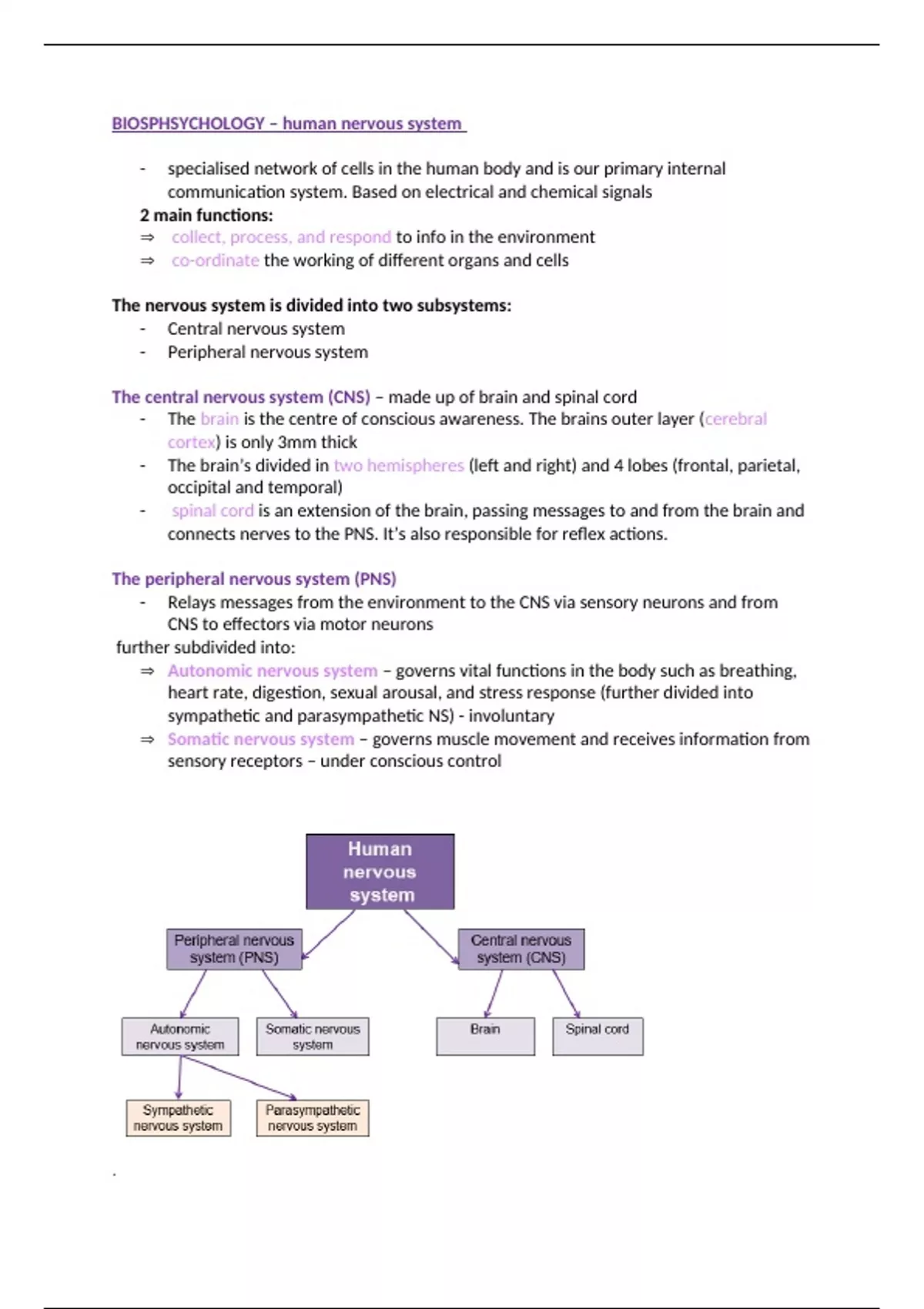 notes on the nervous and endocrine system within biopsych for aqa a level psychology