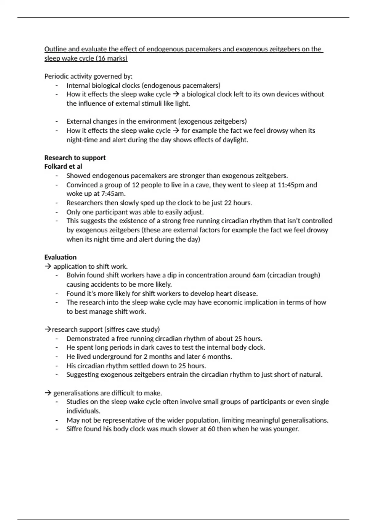 sleep wake cycle (16 marks)