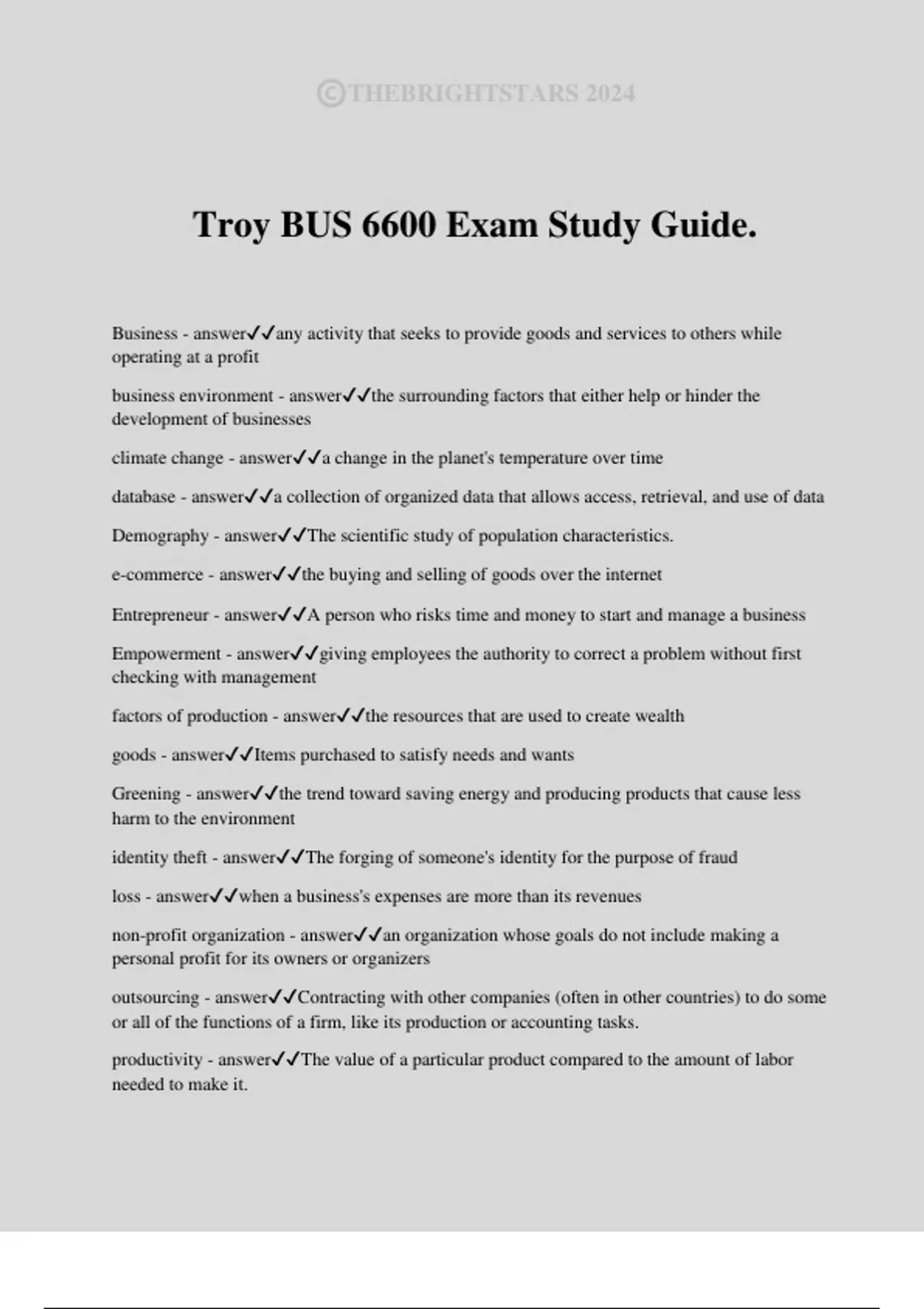 Troy BUS 6600 Exam Study Guide.