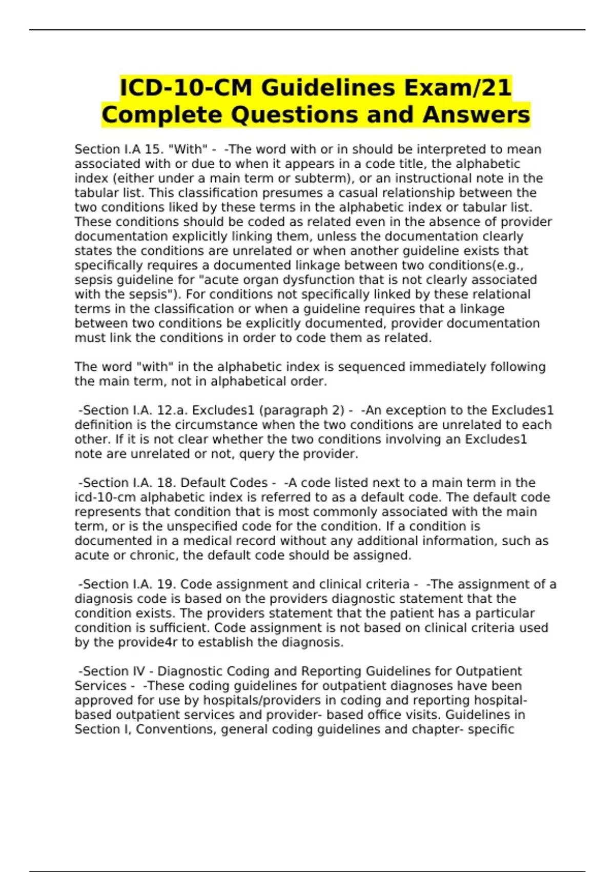 -Section I.A. 19. Code assignment and clinical criteria - -The assignment of a