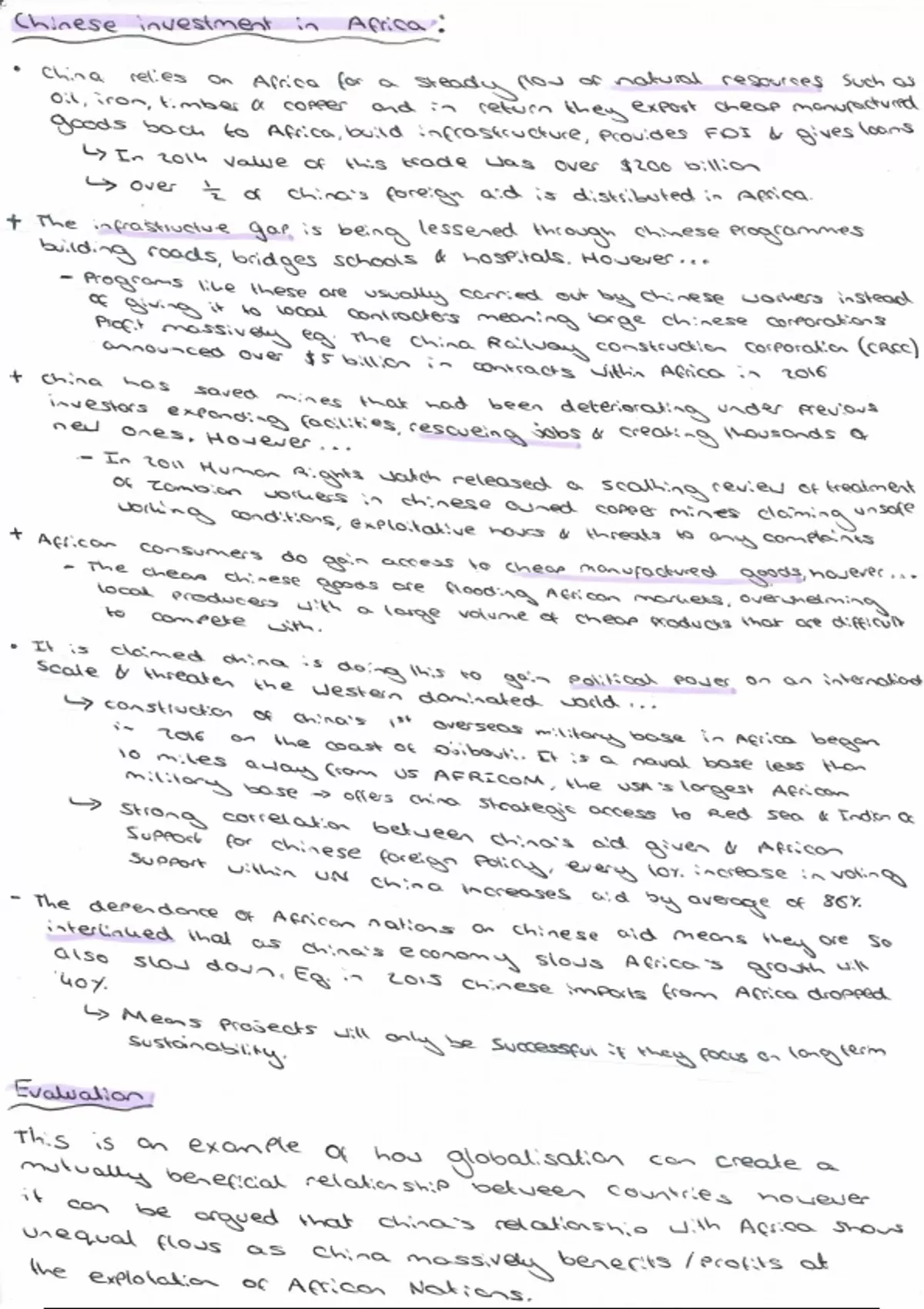 Summary AQA A-Level Chinese Investment in Africa Notes