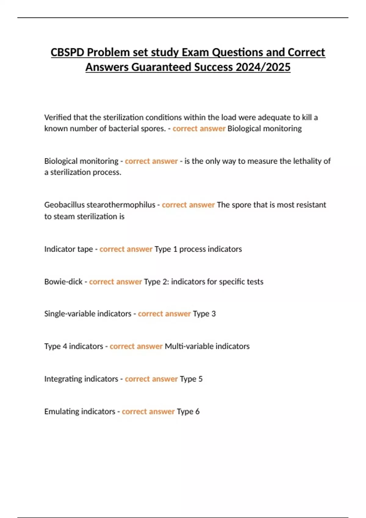 Bowie-dick - correct answer Type 2: indicators for specific tests